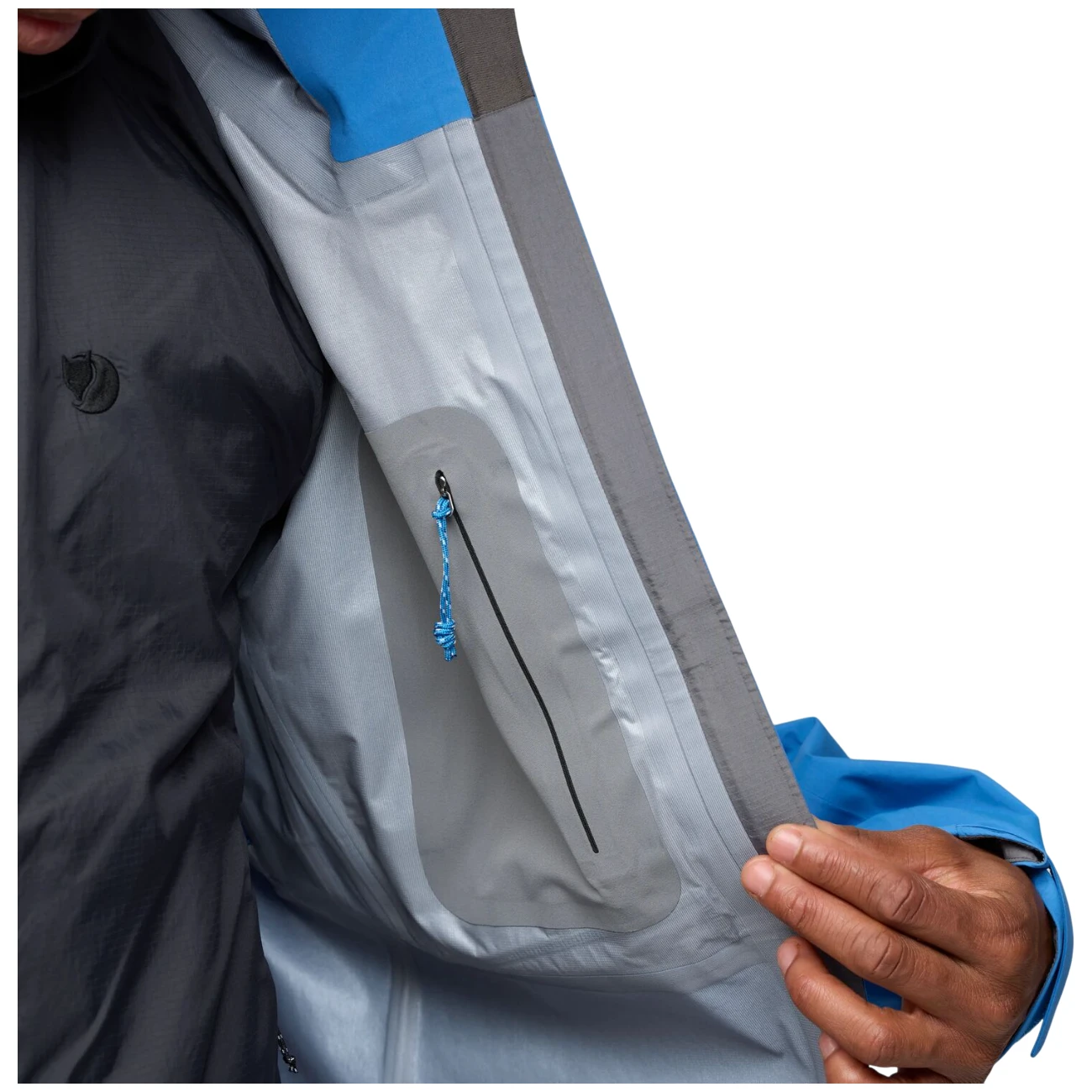 Jacheta pentru bărbați Keb GTX Jacket de la Fjällräven este concepută pentru trekking tehnic solicitant și activități în aer liber, unde protecția împotriva apei, vântului și respirabilitatea ridicată sunt esențiale. Stratul principal este fabricat din poliamidă reciclată cu o membrană cu 3 straturi GORE-TEX® ePE, care asigură o barieră permanent impermeabilă, rezistentă la vânt și respirabilă. Suprafața este tratată cu un tratament DWR fabricat fără PFAS, care respinge apa și murdăria, fără a împiedica eliminarea transpirației.