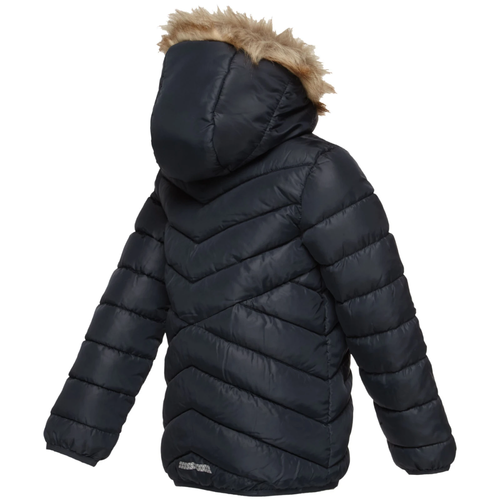 Tivul elastic și capetele mânecilor asigură că jacheta se potrivește perfect și păstrează căldura în interior. Caracteristicile de siguranță, cum ar fi un fermoar osos cu protecție pentru bărbie și detalii reflectorizante, sporesc siguranța copilului dvs. atunci când se deplasează în aer liber. Gluga elegantă cu blană neizolabilă conferă jachetei un aspect la modă și oferă protecție suplimentară împotriva frigului.