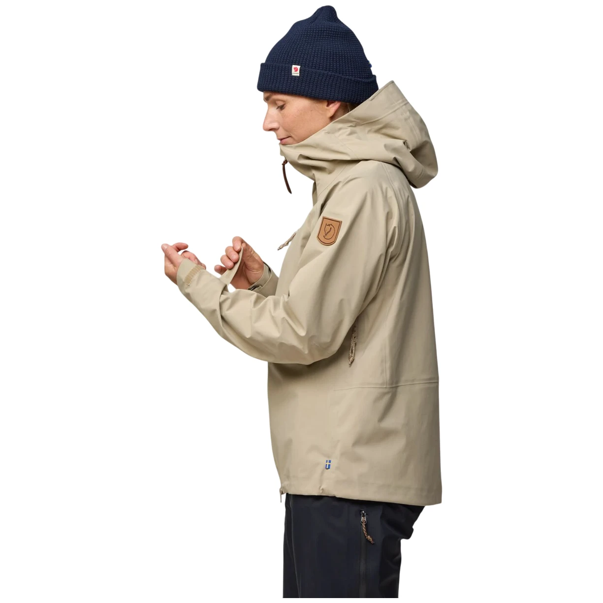 Geaca de iarnă pentru femei Keb GTX Jacket Fjällräven combină tehnologia de vârf a membranei GORE-TEX® ePE și poliamida reciclată pentru o protecție ușoară, impermeabilă și rezistentă la vânt în timpul trekkingului tehnic. Geaca este concepută pentru libertate maximă de mișcare, cu o croială perfectă și o construcție suplă. Tratamentul DWR fără PFAS protejează stratul împotriva umezelii și a murdăriei.