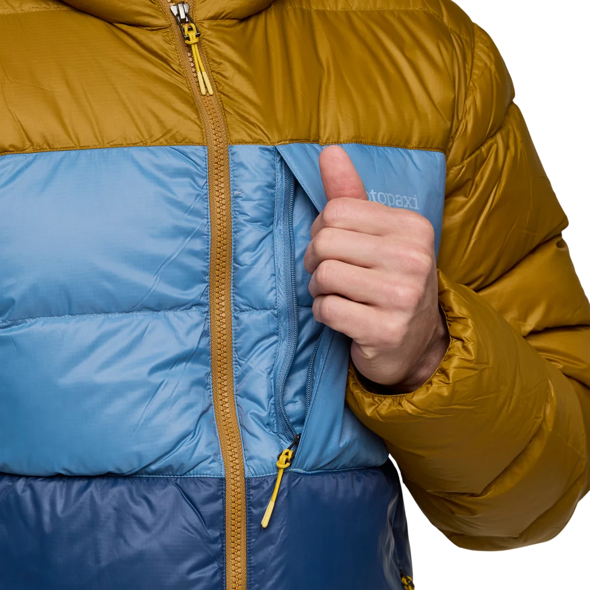 Geaca de puf pentru bărbați M'S Fuego Max Down Hooded Jacket de la Cotopaxi este alegerea perfectă pentru condiții de frig, în care te va menține uscat și cald. Poate fi purtată în oraș sau în natură.