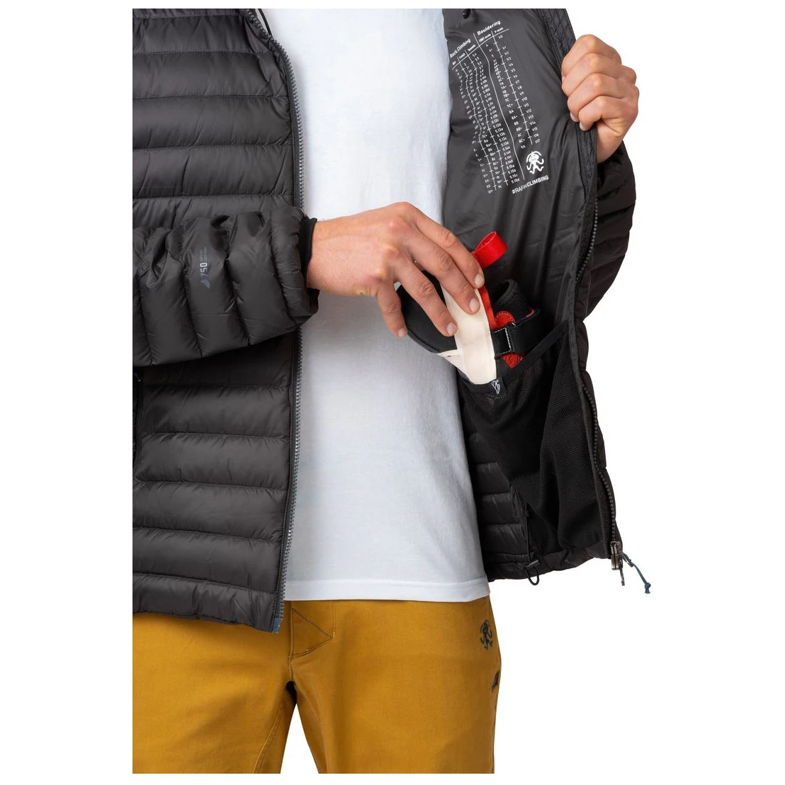 Geaca căptușită pentru bărbați Rafiki Project M va fi apreciată de toți alpiniștii datorită numeroaselor sale caracteristici inteligente. Materialul izolator este puful de rață de calitate, cu certificat RDS, care nu numai că are proprietăți termice excelente, dar are o greutate redusă și este ușor de împachetat. Nailonul reciclat exterior ripstop are un tratament DWR impermeabil. Alpiniștii vor aprecia cu siguranță fermoarul bidirecțional sau buzunarele interioare din plasă, în care pot încăpea chiar și espadrilele de alpinism.