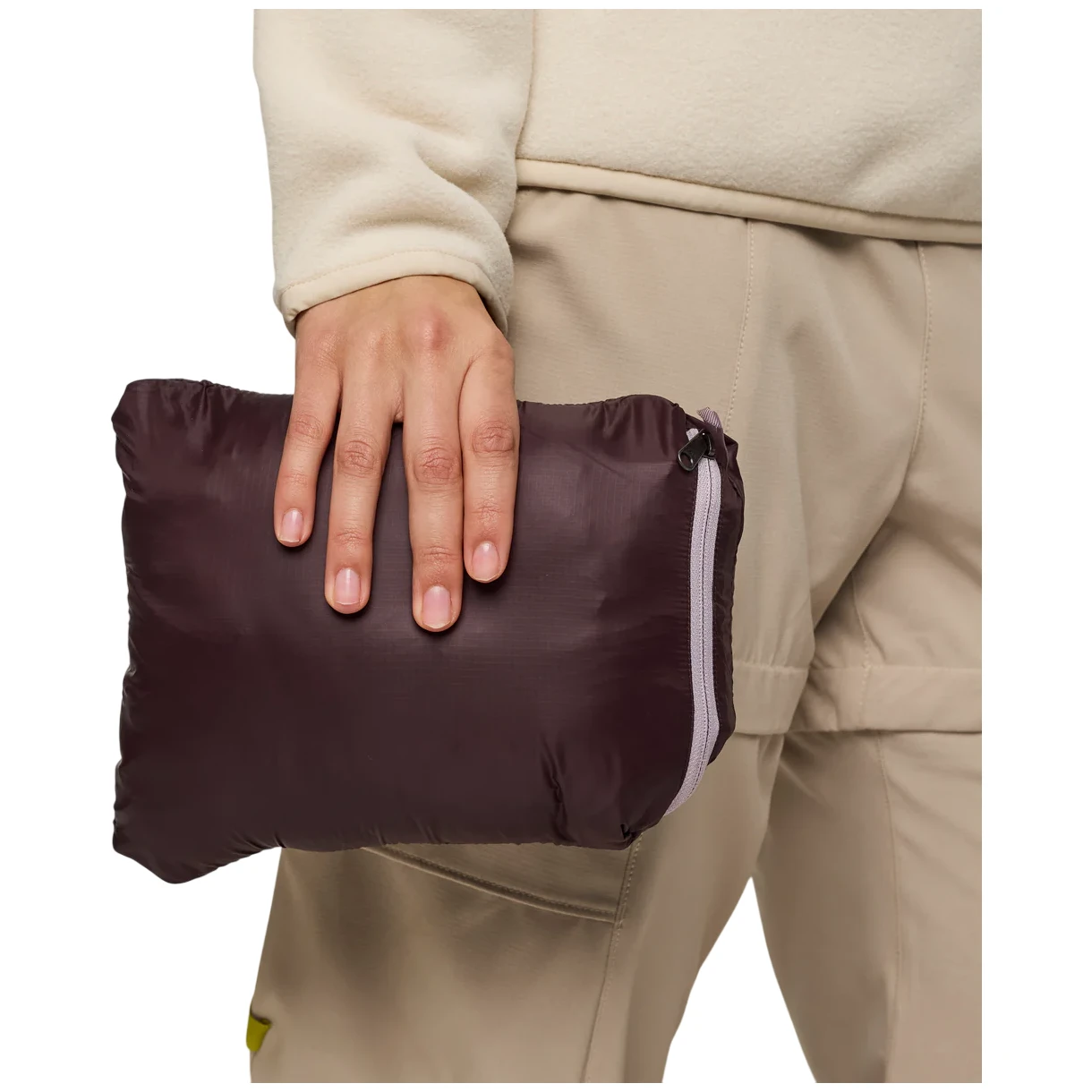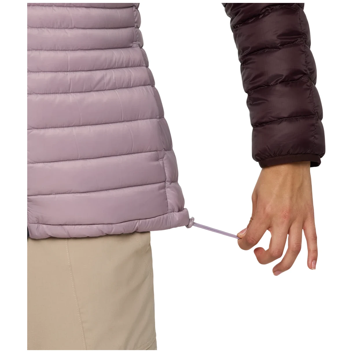 Protecția fiabilă împotriva influențelor externe este asigurată de nailonul reciclat 100% rezistent, care este completat cu un tratament hidrofug DWR pentru o rezistență sporită. Confortul termic maxim este asigurat de umplutura de puf de înaltă calitate cu o capacitate de umplere de 800 cuin și de certificatul Responsible Down Standard (RDS), care garantează că puful provine din surse responsabile. Alte avantaje includ două buzunare pentru mâini cu fermoar și două buzunare interioare. Fermoarul complet are o clapetă de protecție pe interior. Gluga potrivită are bordură elastică, la fel ca manșetele de la mâneci. Tivul inferior are șnururi de strângere. Întreaga jachetă poate fi împachetată într-un buzunar mic.