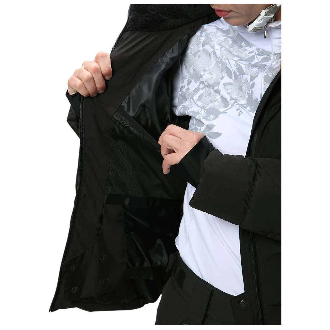 Respirabilitatea de 5.000 g/m²/24 h și aerisirea cu fermoar asigură o purtare confortabilă chiar și în timpul activităților fizice mai intense, astfel încât să rămâneți uscat și confortabil pe tot parcursul zilei. Gluga fixă și mânecile elastice interioare cu orificiu pentru degetul mare sporesc confortul termic și previn pătrunderea zăpezii. Tivul inferior poate fi ajustat, în timp ce centura de zăpadă interioară menține căldura în mod fiabil și previne pătrunderea vântului.