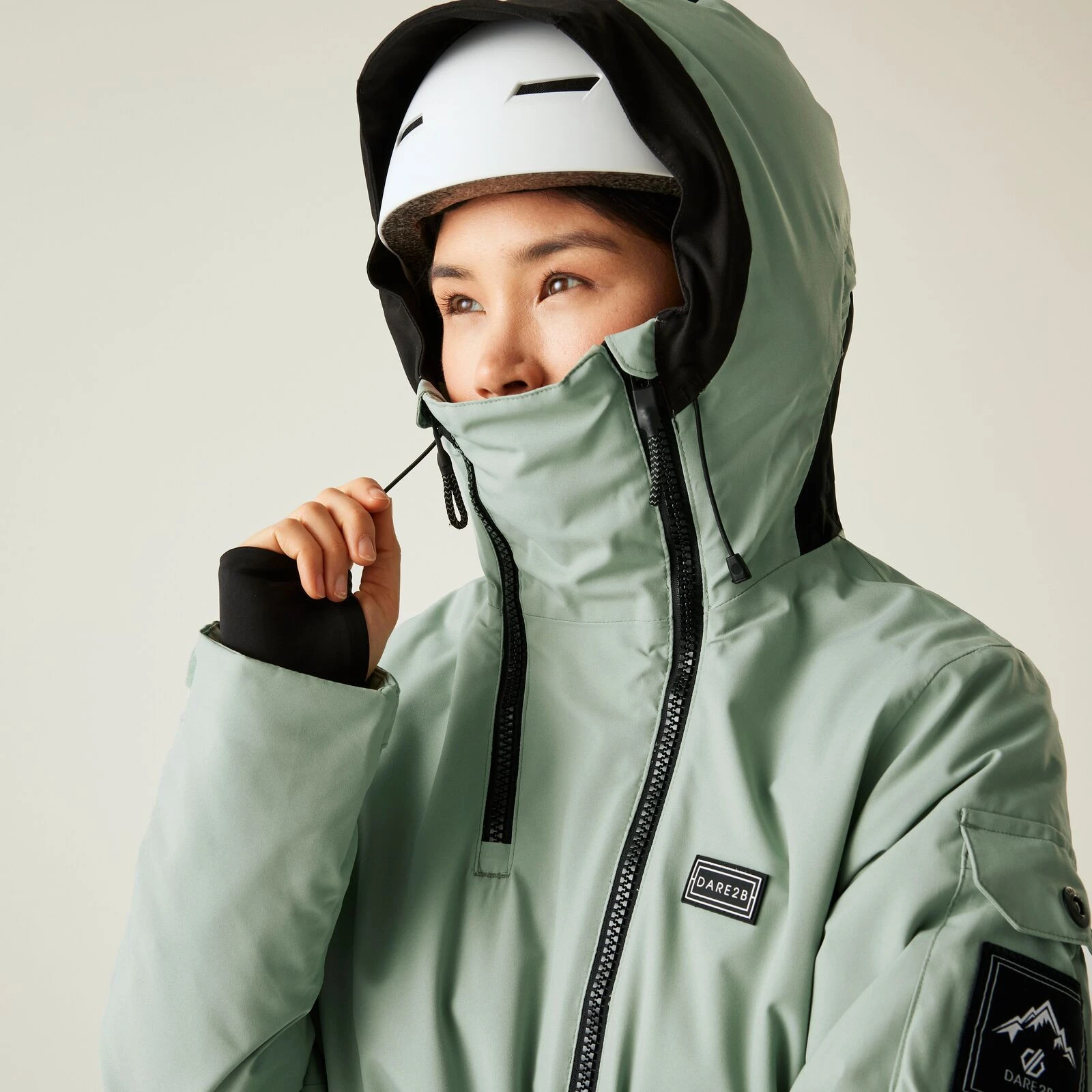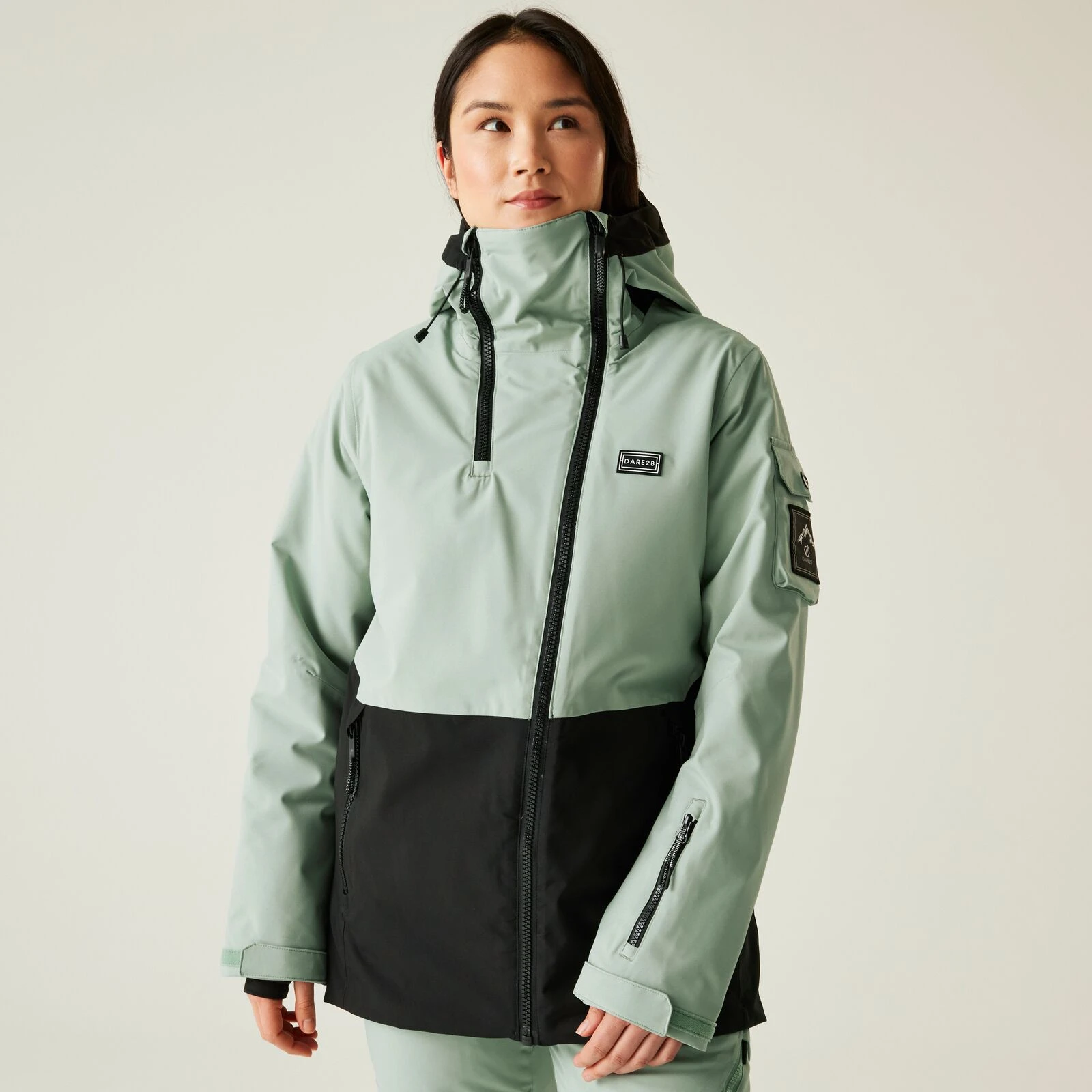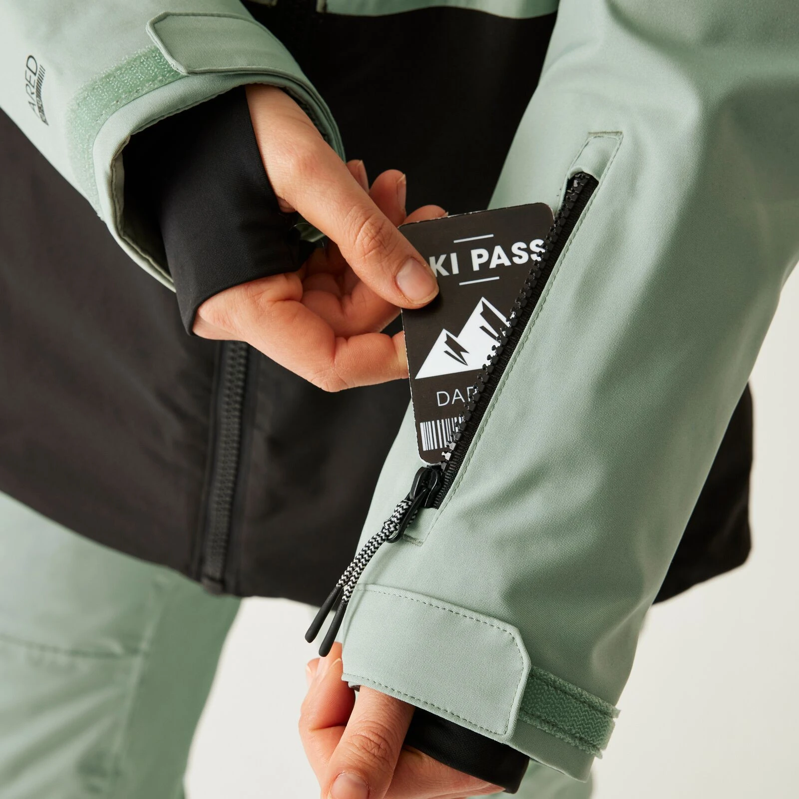 Geaca oferă detalii practice pentru schi, inclusiv un buzunar pentru skipass, o centură fixă împotriva zăpezii cu prindere cu gel și un buzunar interior cu fermoar. Buzunarul din plasă cu lavetă pentru ochelari asigură că aveți tot ce aveți nevoie în siguranță la îndemână.