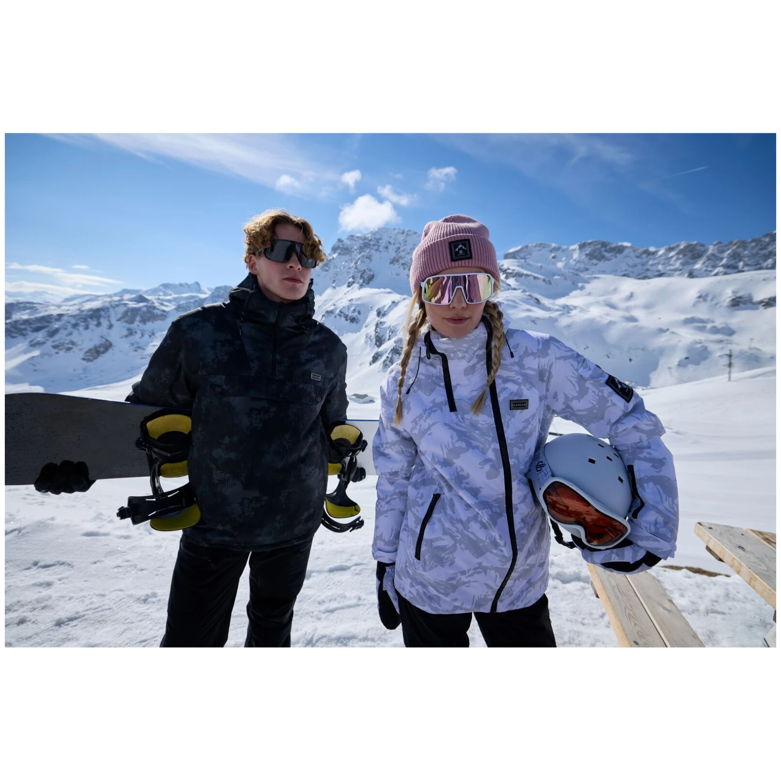 Geaca este echipată cu umplutură reciclată călduroasă și un tratament impermeabil fără PFC, PFOA și PFOS, ceea ce asigură căldură și protecție chiar și în condiții dificile de iarnă. Gluga este compatibilă cu casca și dispune de curele de strângere reglabile pentru o potrivire perfectă.