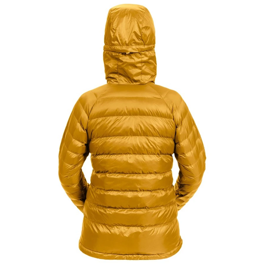 Materialul exterior este fabricat din material textil Toray™ Airtastic™ de cea mai bună calitate, cu finisaj hidrofug DWR, respirabilitate excelentă și un raport excelent între greutate redusă și durabilitate. Confortul termic principal este asigurat de 98 g de puf de rață european reciclat, cu o putere de umplere de 650 cuin (mărime). M), certificat de GRS.