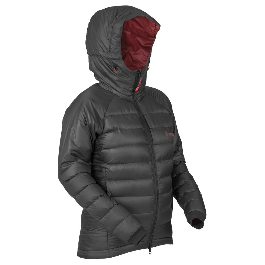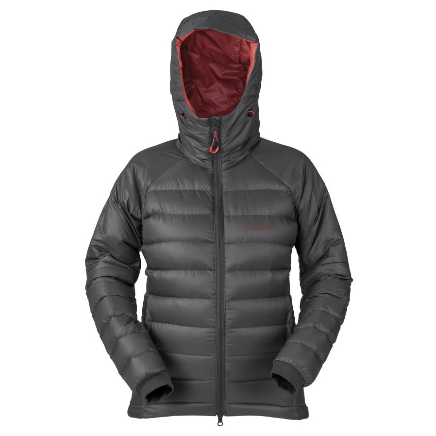 Jacheta utilizează puf european premium de gâscă (850 cuin, 75 g) cu certificare RDS și tratament hipoalergenic, completat de izolație sintetică CLO Vivo Endurance 80 g/m² în zonele cu umiditate crescută – glugă, umeri, sub brațe, partea inferioară a spatelui și guler. Această combinație asigură o izolație excelentă și un eficient transfer al umidității.