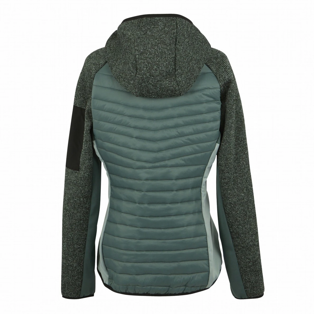 Geaca de damă Wms Newhill Hybrid de la Regatta este o geacă hibridă modernă, concepută pentru femeile care doresc un echilibru ideal între căldură, libertate de mișcare și greutate redusă. Combină țesătura ușoară cu un finisaj hidrofug, izolația sintetică călduroasă Warmloft și panourile elastice Extol Stretch pentru un confort maxim chiar și pe vreme rece.