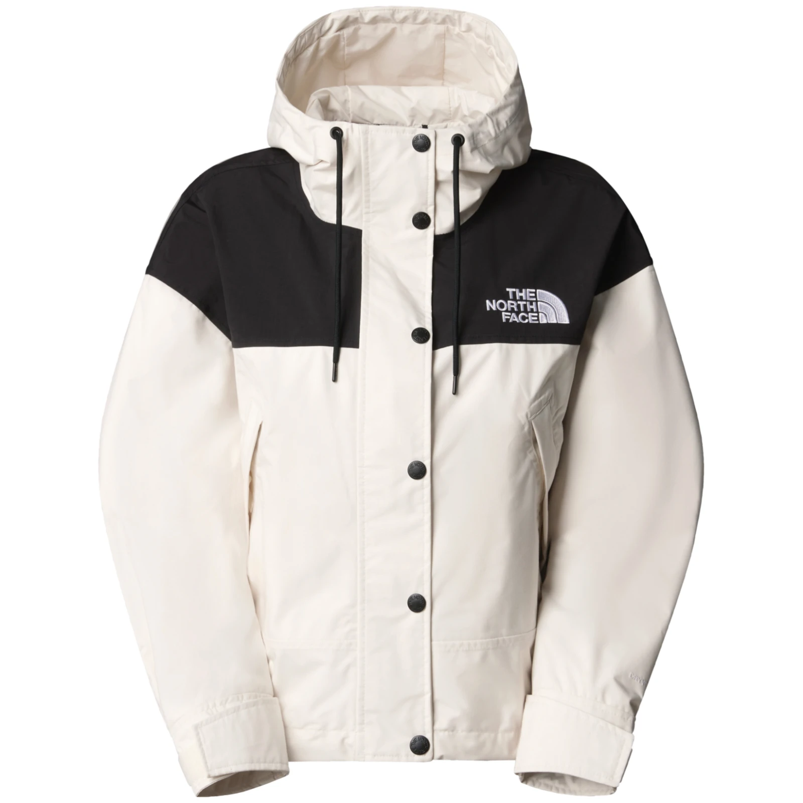 Pentru utilizare practică, este echipată cu o glugă reglabilă, o baretă anti-vânt cu capse, care acoperă fermoarul principal, și două buzunare cu fermoar pentru mâini, căptușite cu poliester reciclat. Partea inferioară extinsă în spate asigură o acoperire mai bună a spatelui și confort în timpul mișcării. Logo-ul brodat The North Face pe piept și umărul din spate completează designul iconic.
