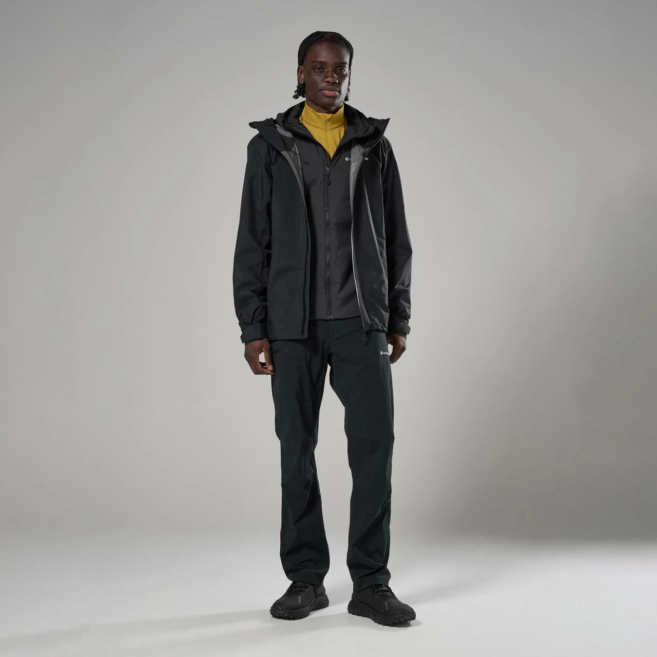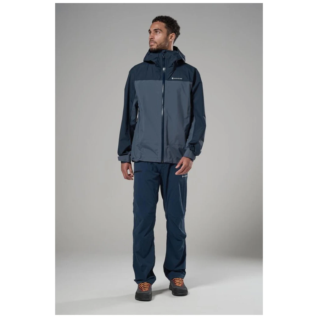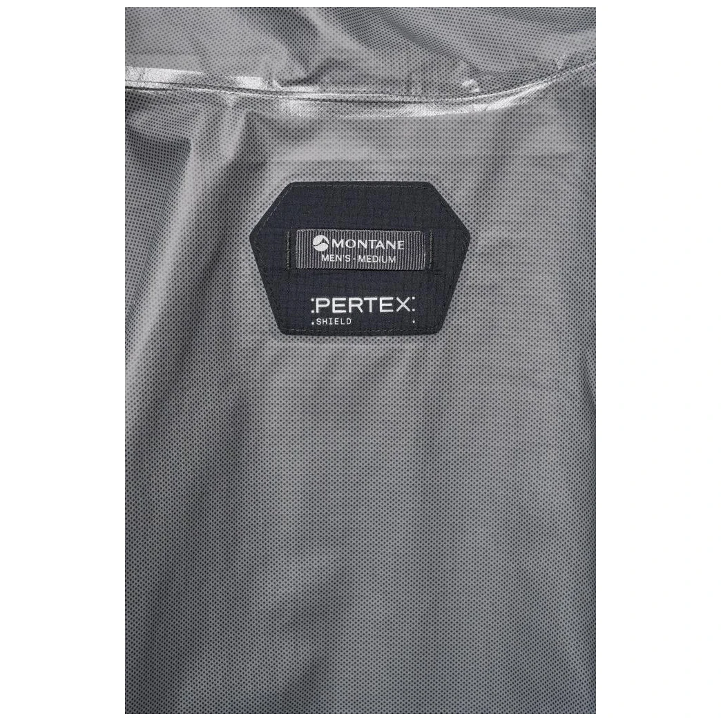 Baza este realizată din materialul Pertex® Shield 2,5 L, care combină o țesătură reciclată ripstop 40D cu o membrană impermeabilă și rezistentă la vânt. Căptușeala interioară din tricot 20D este plăcută la atingere și sporește confortul la purtare. Construcția este proiectată cu accent pe greutate redusă și funcționalitate, în timp ce numărul limitat de cusături ajută la creșterea durabilității și, în același timp, susține respirabilitatea în timpul mișcării active.