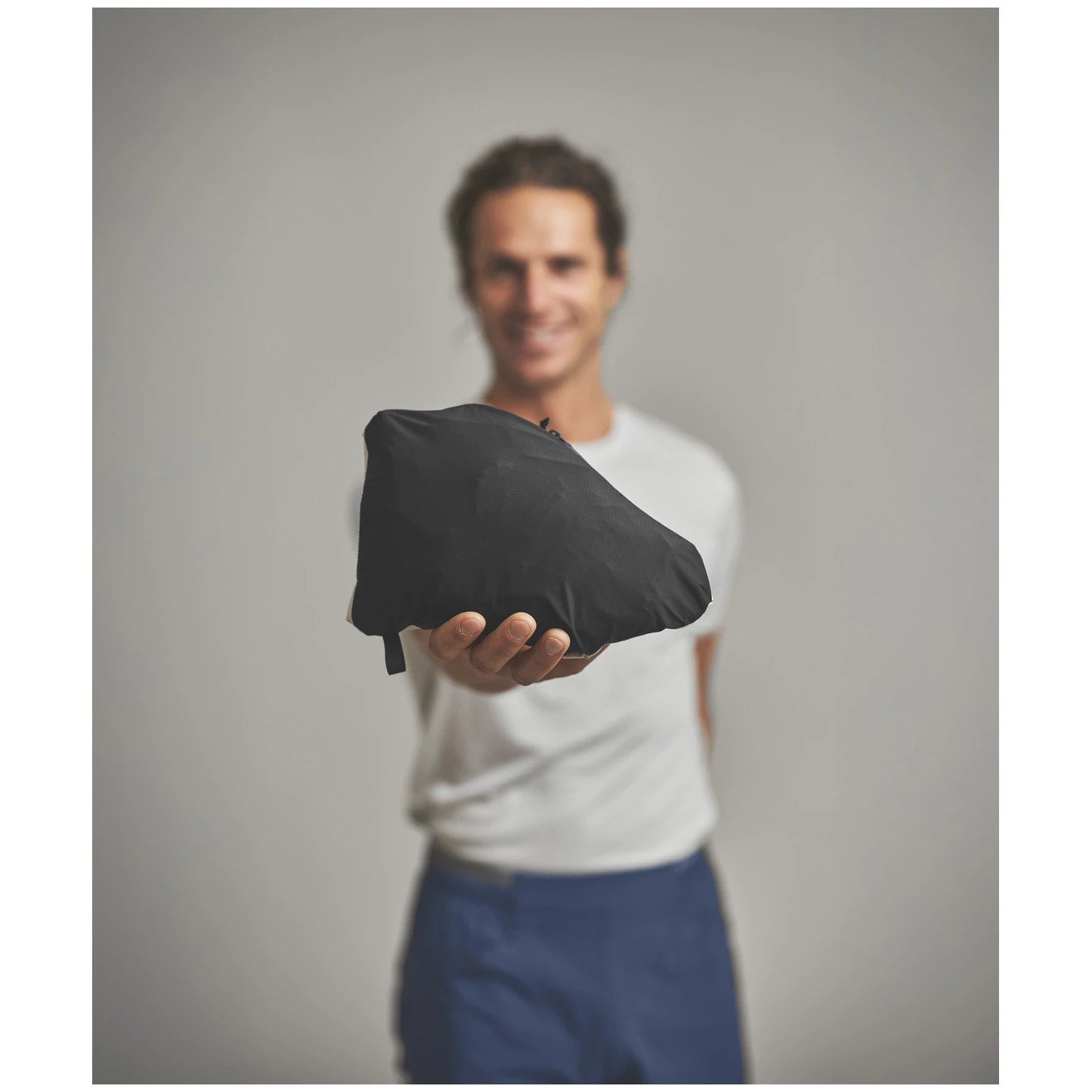 Un avantaj uriaș pentru toți alpiniștii este economisirea spațiului. Întreaga jachetă poate fi împachetată direct în buzunarul integrat de la piept, care este, de asemenea, echipat cu o buclă practică. Astfel, o puteți atașa oricând la îndemână, de exemplu, direct la hamul de alpinism.