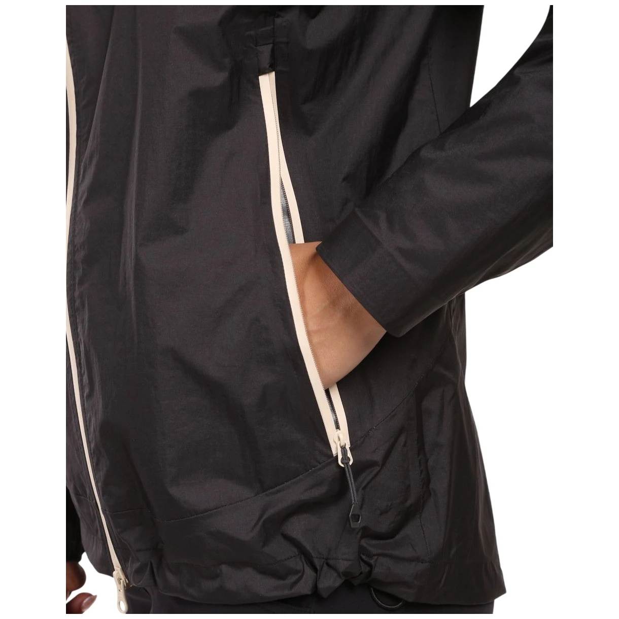 Gluga spațioasă cu șnur protejează împotriva vântului și poate fi ușor pusă peste o cască. Jacheta are un cordon de strângere la tivul inferior și un breloc practic în interiorul buzunarului. Datorită croielii mai lejere din piese modelate, jacheta se adaptează bine corpului și nu restricționează mișcarea. Pentru a menține funcționalitatea și durabilitatea hainelor cu membrană, vă recomandăm să urmați instrucțiunile de spălare și îngrijire de pe eticheta de îngrijire.