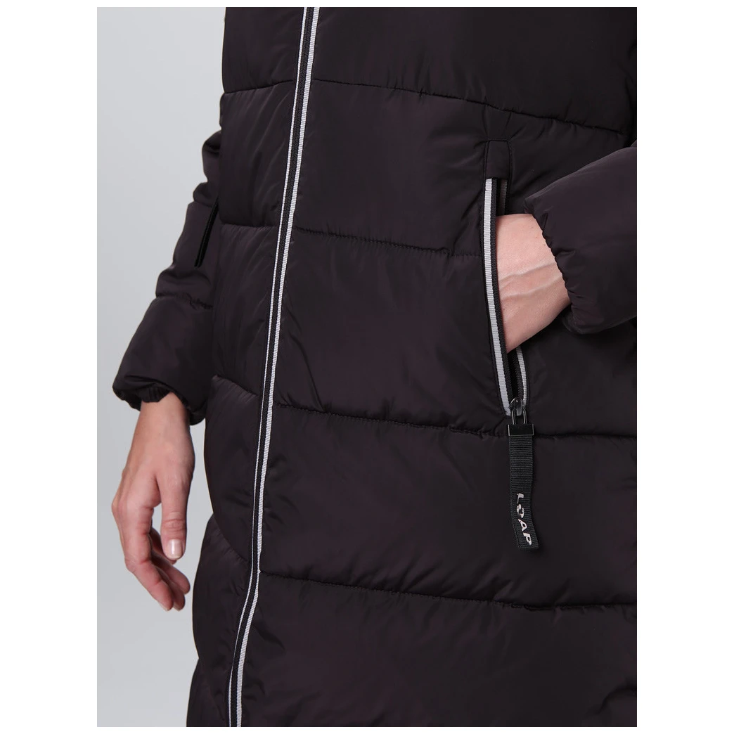 Paltonul TANDORA este echipat cu un fermoar cu spirală inversă în două direcții, care permite desfacerea fermoarului din ambele părți și șireturi elastice la mâneci pentru o protecție mai bună împotriva frigului. Designul elegant este completat de o glugă fixă și buzunare practice cu fermoar, care păstrează tot ce este important la îndemână.