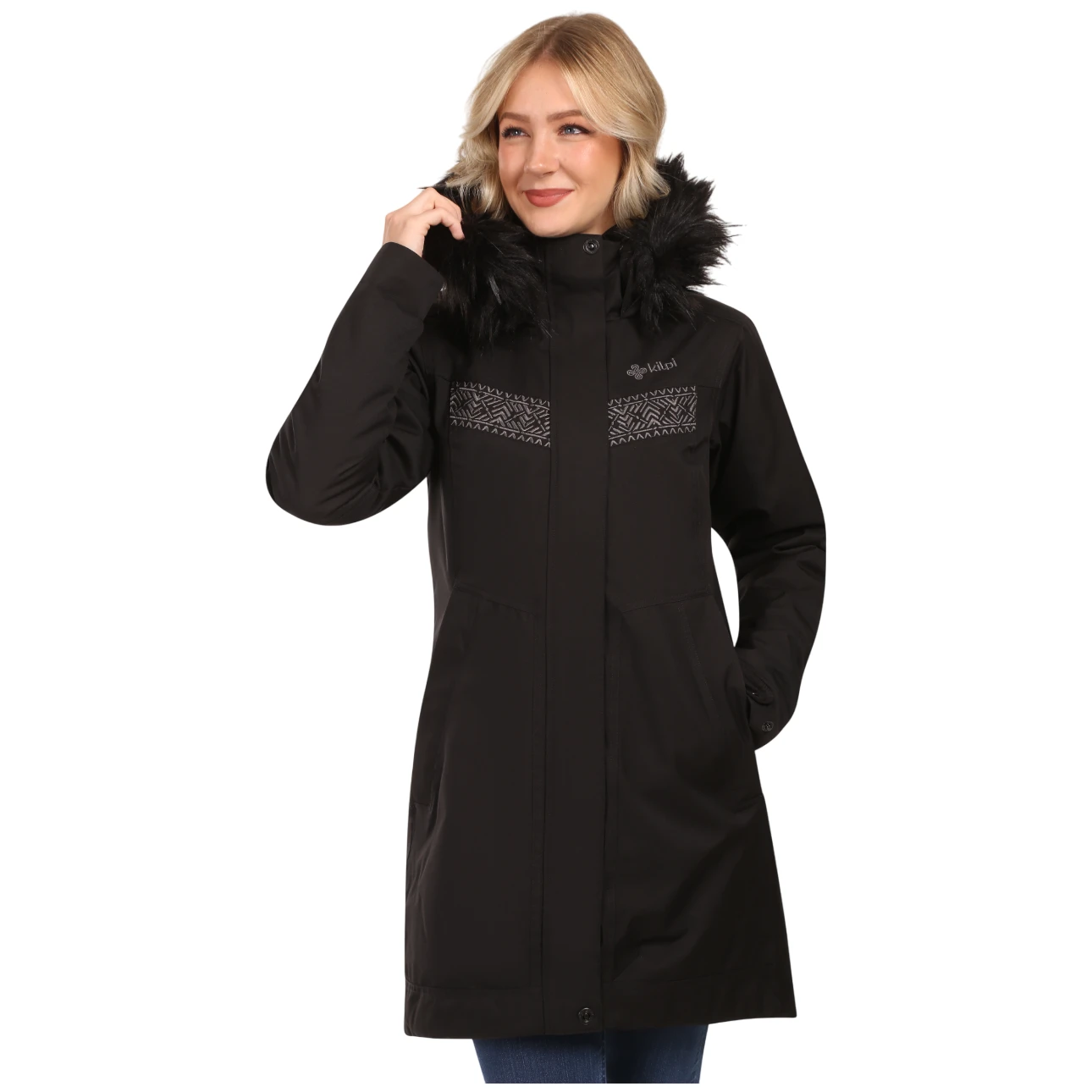 Palton de iarnă Kilpi Peru-W. Este o piesă vestimentară elegantă pentru oraș, cu detalii funcționale.