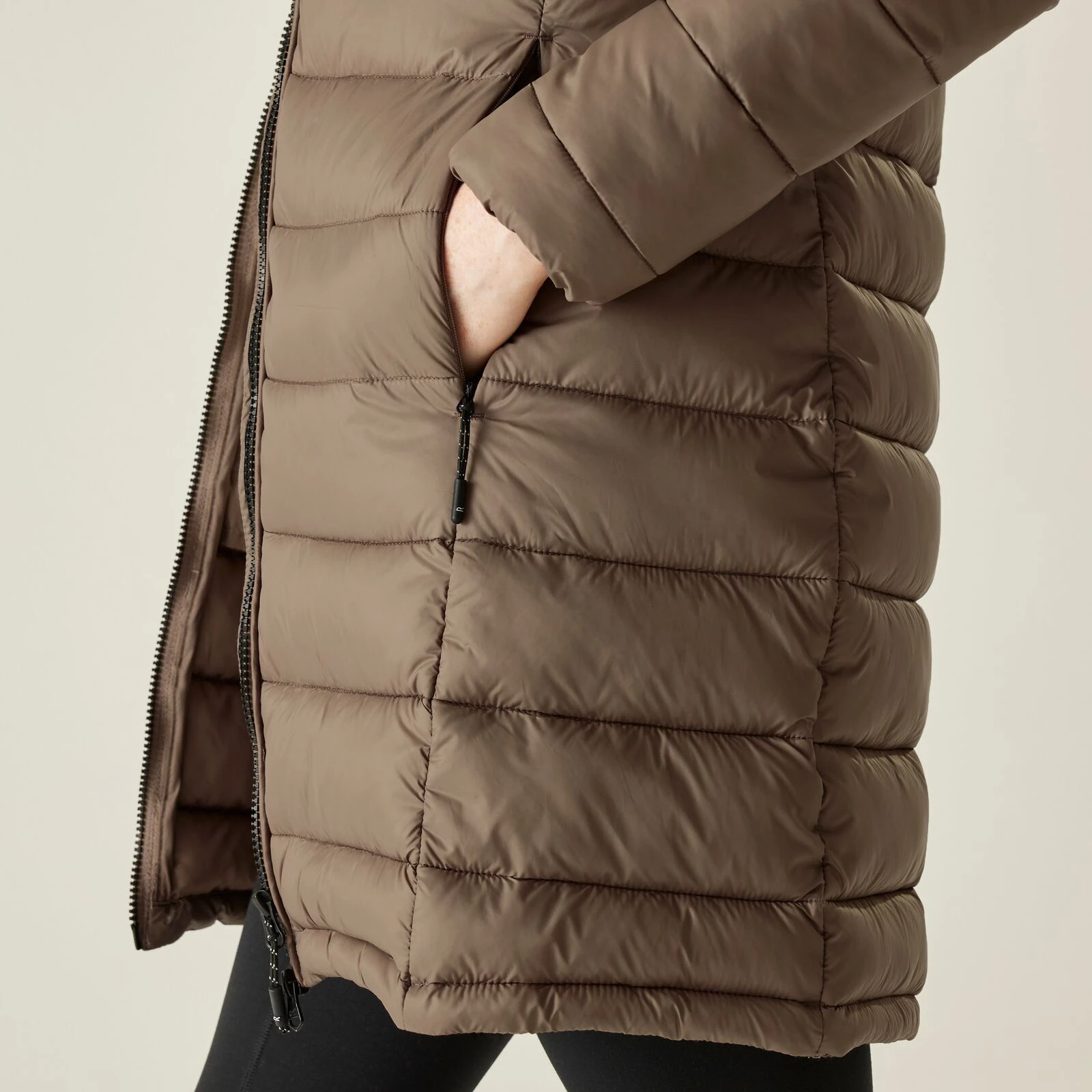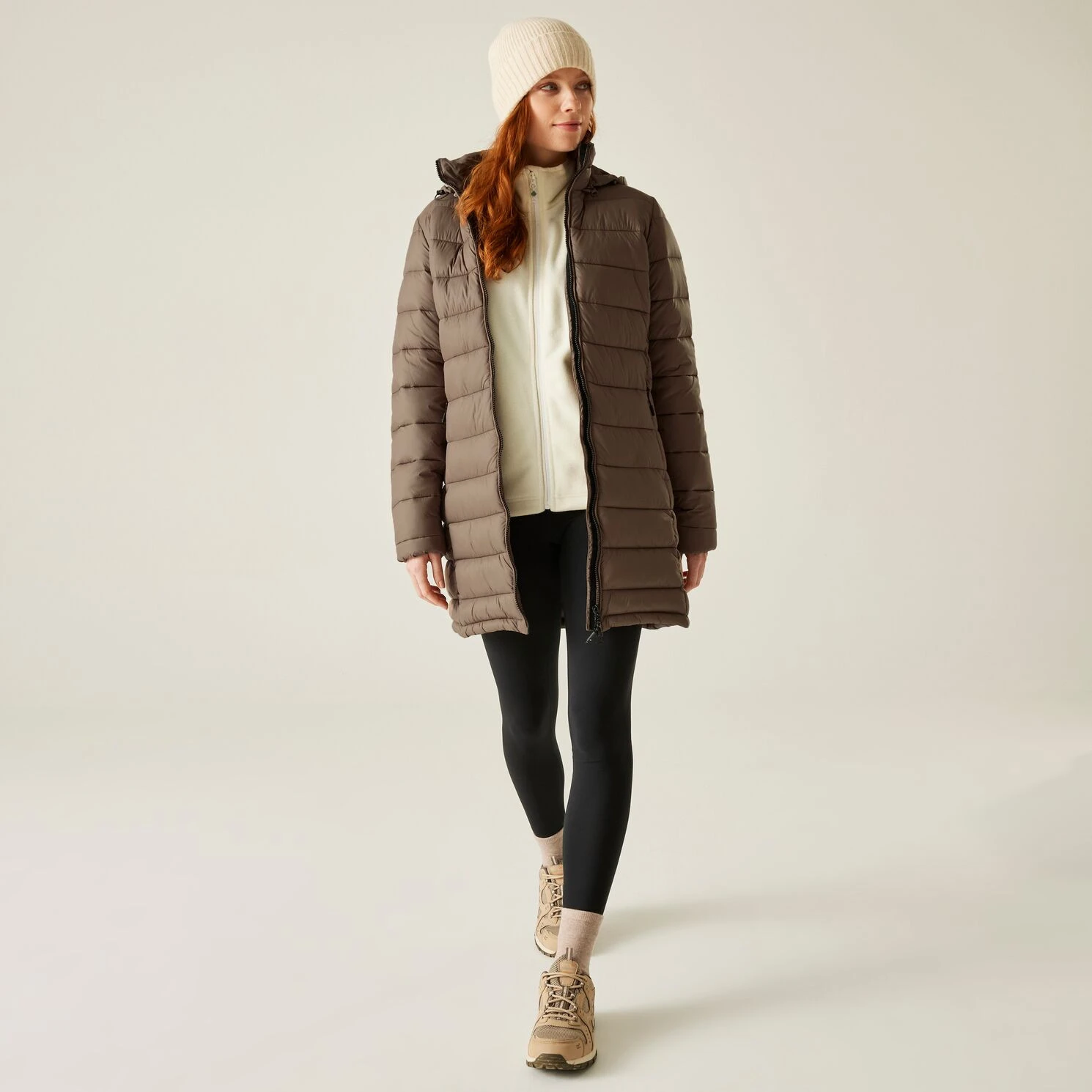 Termoizolată, impermeabilă și cu design modern - geaca căptușită pentru femei Starler de la Regatta cu izolație călduroasă și moale Atomlight oferă confort și greutate scăzută. Geaca căptușită este dotată cu tratament impermeabil. Gluga oferă protecție sporită. Lungimea extinsă oferă protecție sporită.