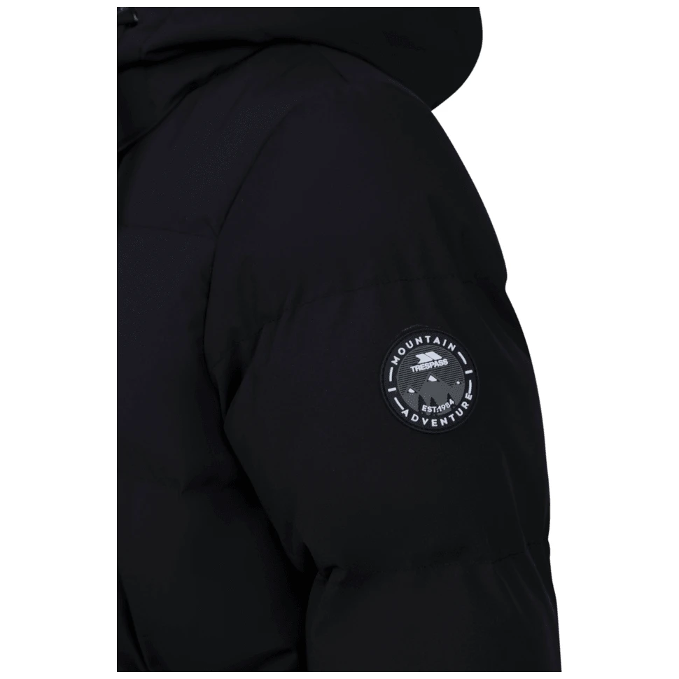 Paltonul de damă impermeabil Trespass Colter combină croiala prelungită, umplutura termică, membrana TPU și detaliile tehnice pentru protecție maximă în ploaie.