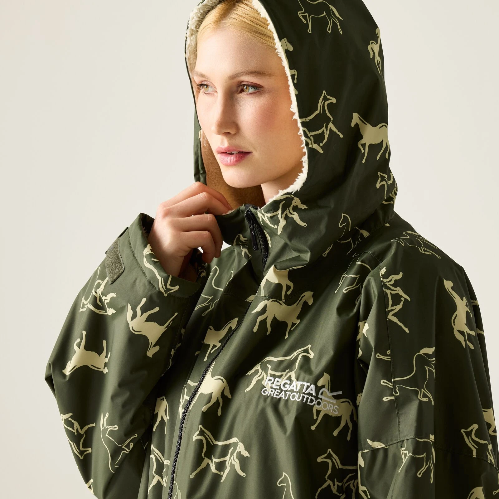 Regatta Adult W Proof Robe este un poncho impermeabil, rezistent la vânt și extra spațios, cu fleece, în care te poți schimba confortabil, uscat și călduros oriunde în aer liber.