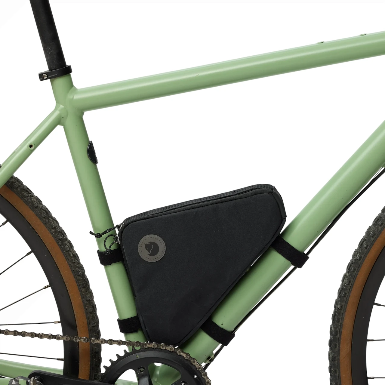 Fjällräven Hoja Triangle Frame Bag este conceput pentru montare în triunghiul cadrului bicicletei, oferind spațiu ideal pentru depozitarea uneltelor, mâncării sau a altor elemente esențiale. Este excelent pentru bikepacking și pentru excursii mai lungi, când veți aprecia accesul ușor la echipament în timpul mersului.