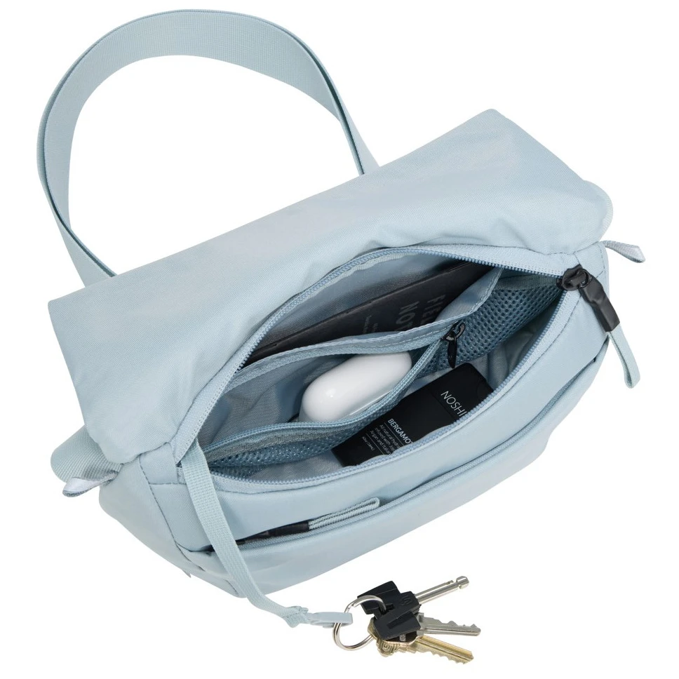 Geantă de umăr EnRoute Sling Bag 2L de la Thule cu certificare bluesign® fabricată din materiale reciclate. Oferă opțiuni versatile de purtare - ca geantă de umăr sau în jurul taliei. Buzunarul din plasă cu fermoar din compartimentul principal păstrează obiectele mici la îndemână. Datorită elementelor reflectorizante de pe cureaua de umăr/talie, vei fi vizibil chiar și pe întuneric.