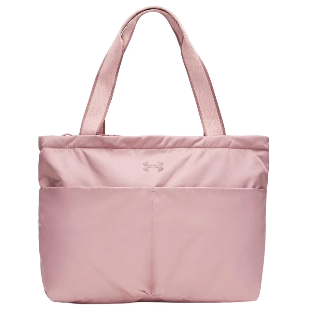 Geantă tote Studio Lite pentru femei de la marca Under Armour, cu un compartiment principal mare cu fermoar, cu organizare internă și husă căptușită pentru telefon - poate ține până la un iPhone 15 Pro Max sau un telefon de dimensiune similară. Curele elastice practice care facilitează transportul covorașului de yoga sau al rolei de spumă. Fermoar echipat cu o bandă elastică care poate fi utilizată, de exemplu, în păr.
