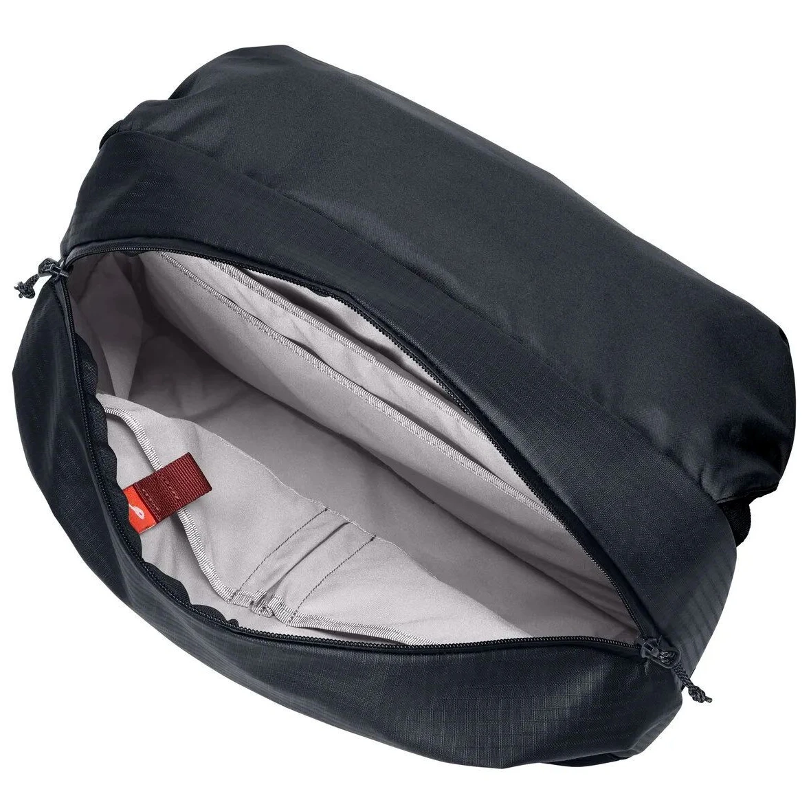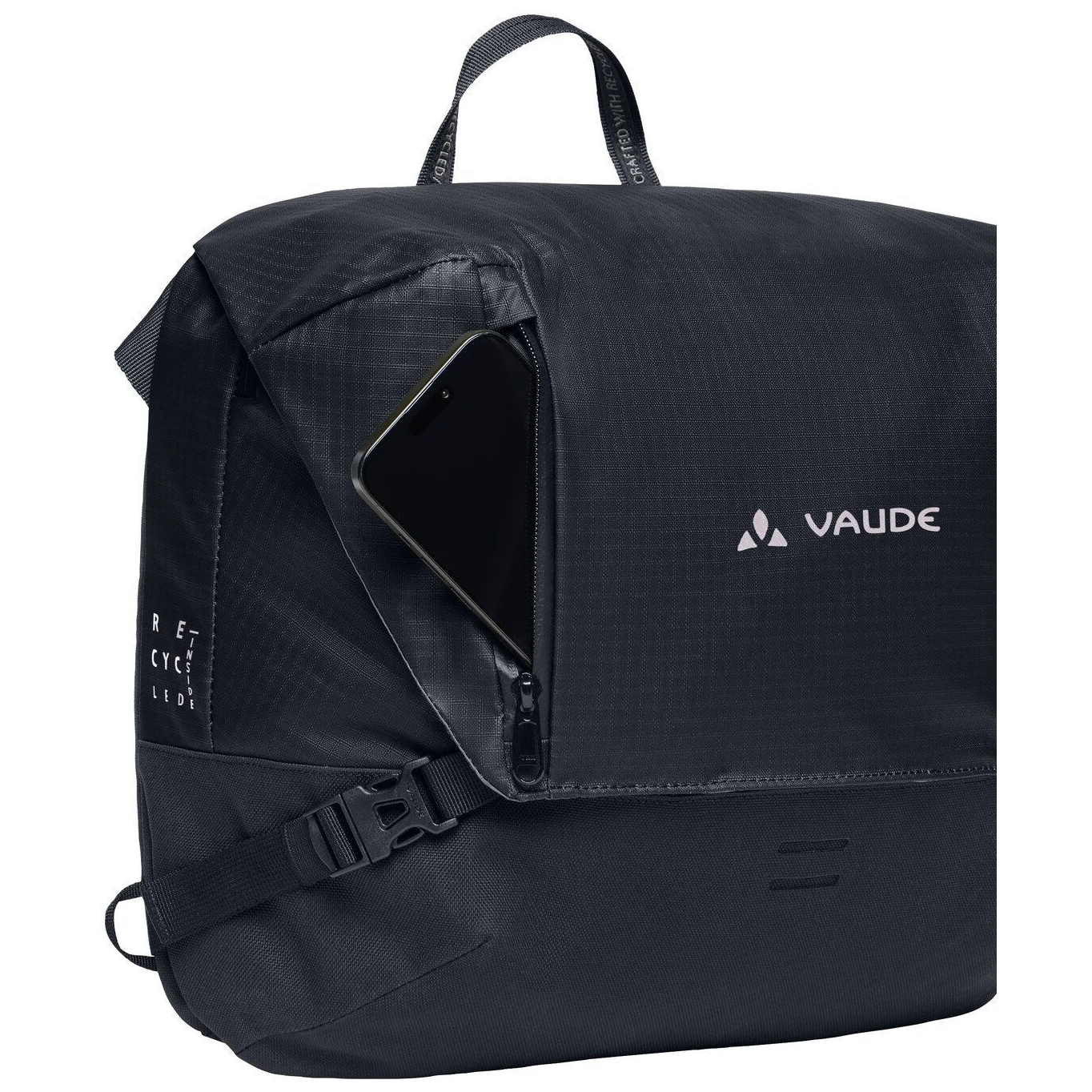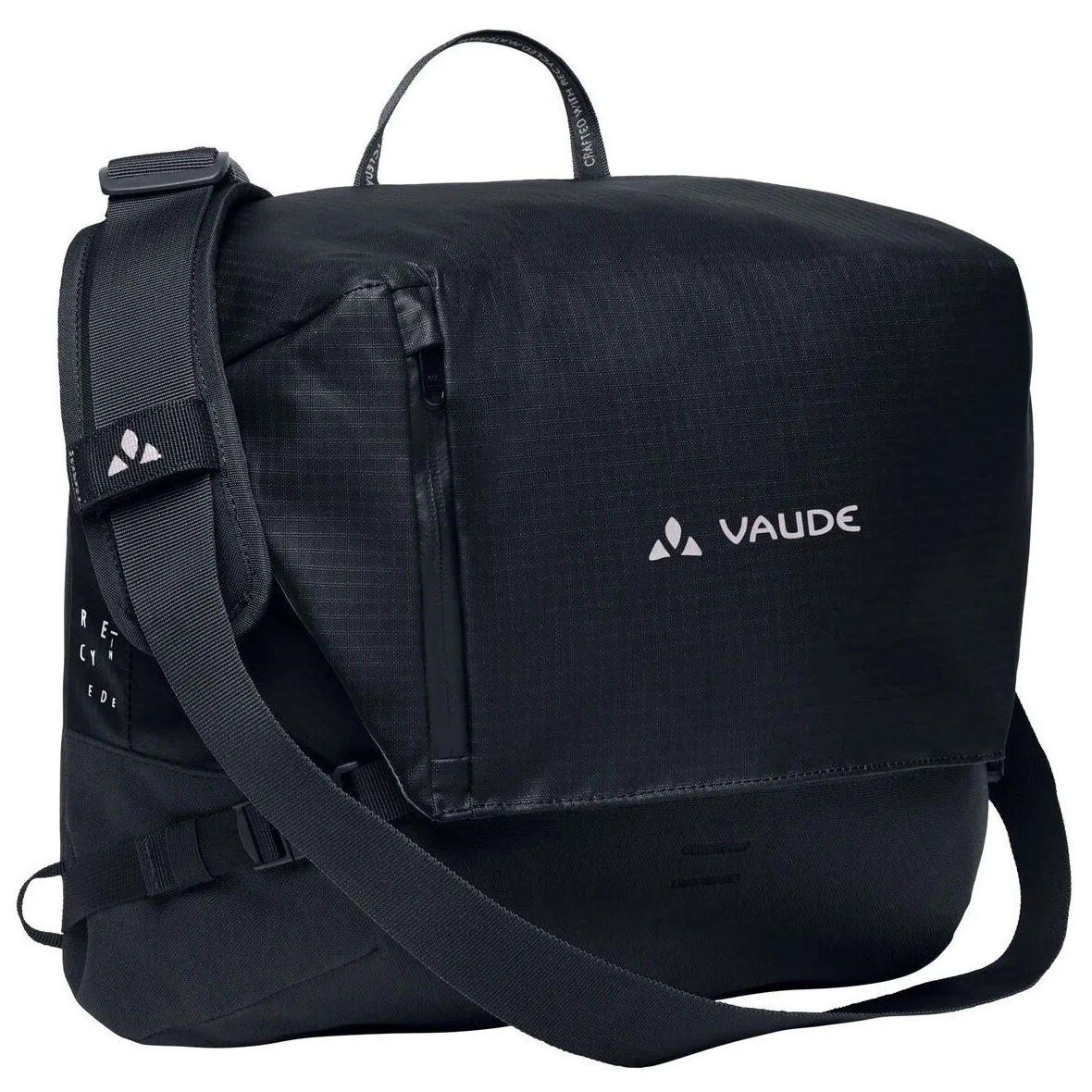 Geanta de umăr City Messenger Vaude este o geantă urbană practică, cu un volum de 15 litri, potrivită pentru documente în format A4 și laptopuri de până la 13,3". Dispune de un compartiment principal cu organizator, suport pentru chei și pix, un buzunar ascuns la spate pentru depozitarea în siguranță a obiectelor de valoare și un buzunar frontal pentru acces rapid. Bretelele de umăr căptușite și reglabile și cureaua de șold detașabilă asigură o purtare confortabilă, în timp ce bucla frontală permite atașarea unui far pentru bicicletă.