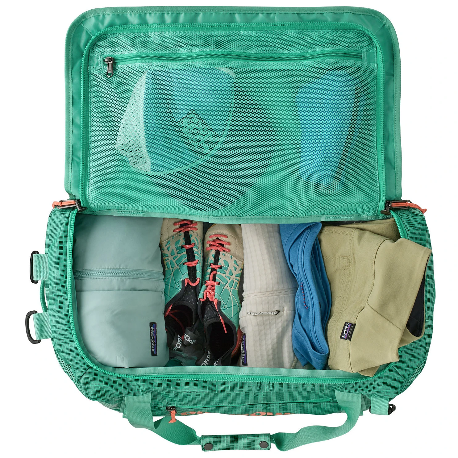 Geanta de călătorie Black Hole Duffel 40L de la Patagonia este alegerea perfectă pentru weekend-uri lungi și călătorii mai scurte cu avionul sau trenul. În timpul acestor călătorii, puteți transforma rapid și ușor geanta într-un rucsac confortabil cu ajutorul curelelor de umăr detașabile și căptușite. Acestea sunt, de asemenea, ergonomice pentru confort maxim. Cele 2 mânere laterale ranforsate pot fi folosite și pentru manevrarea genții.