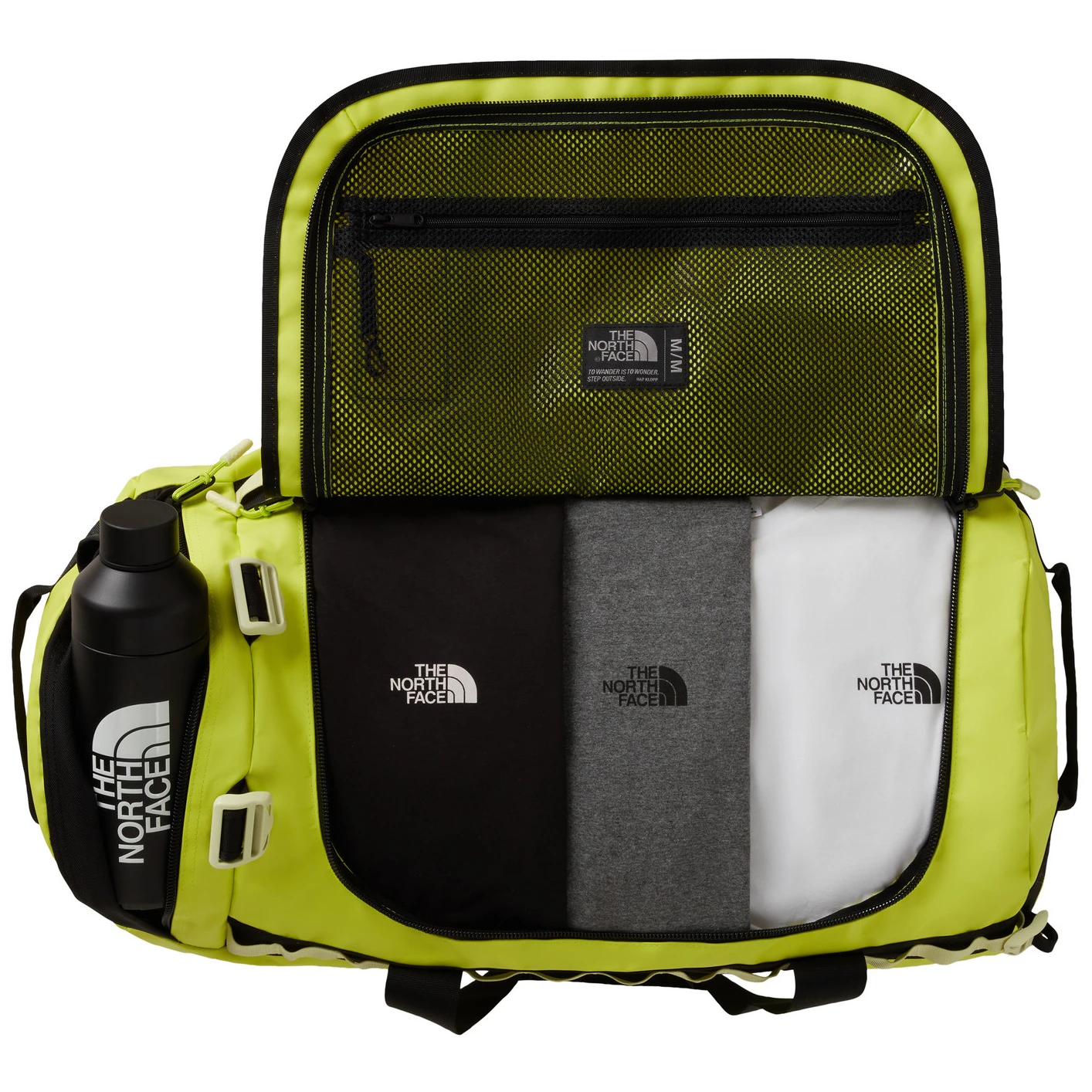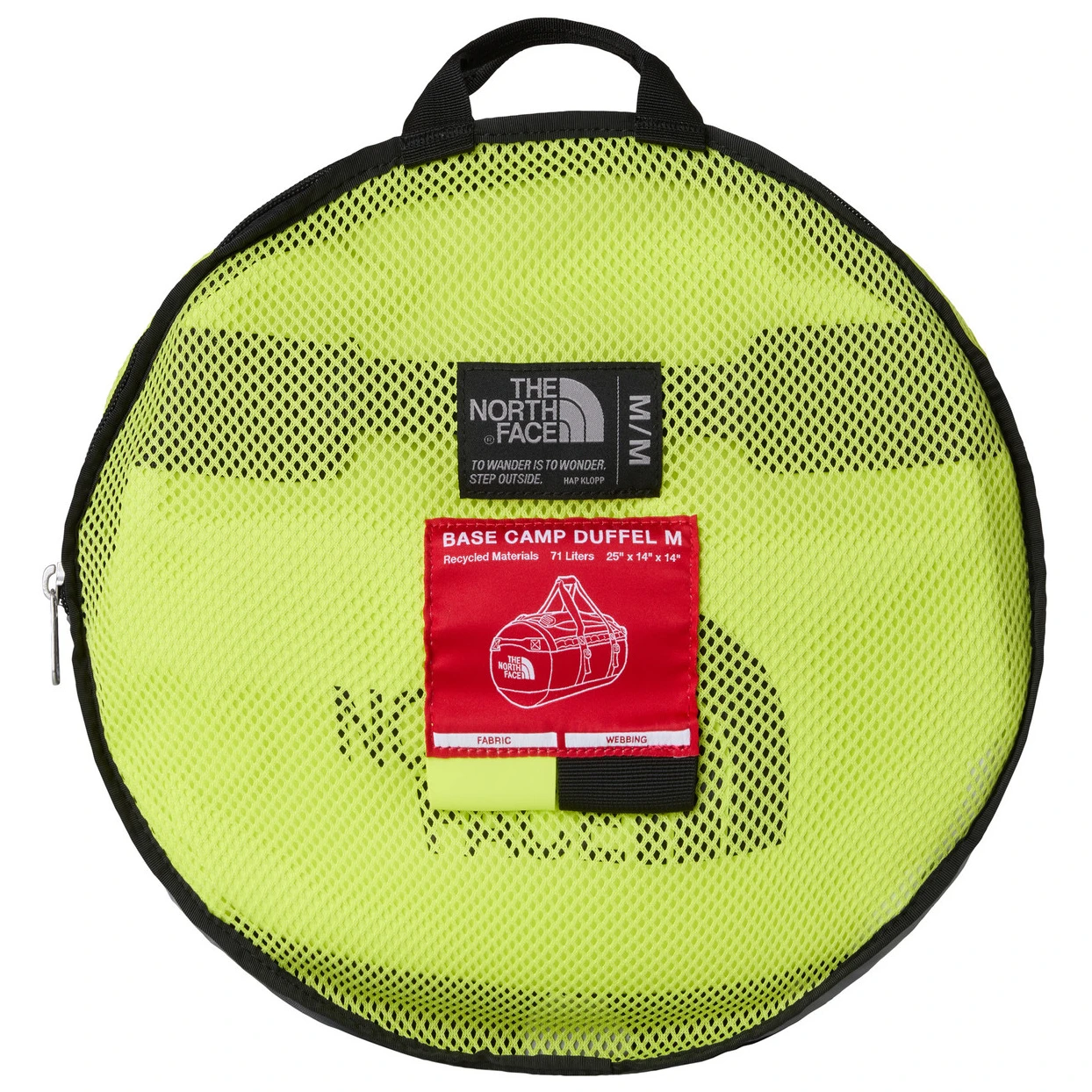 Geanta de voiaj The North Face Base Camp Duffel - M este foarte durabilă, cu o capacitate de 71 de litri. Modelul provene de la renumita geantă Duffly din anii precedenți, dar în comparație cu acesta, calitatea și funcționalitatea materialului este mult mai ridicată. La cămara principală se poate accesa prin capacul acesteia, care dispune de fermoar rezistent; în interiorul genții se află buzunar cu plasă și organizator. Geanta este dotată cu buzunar impermeabil în care se poate depozita îmbrăcămintea sau încălțămintea udă, mai dispune de patru curele de compresie, mâner pentru transport în mână și curele de umăr concepute ergonomic pentru transport confortabil în spate.
