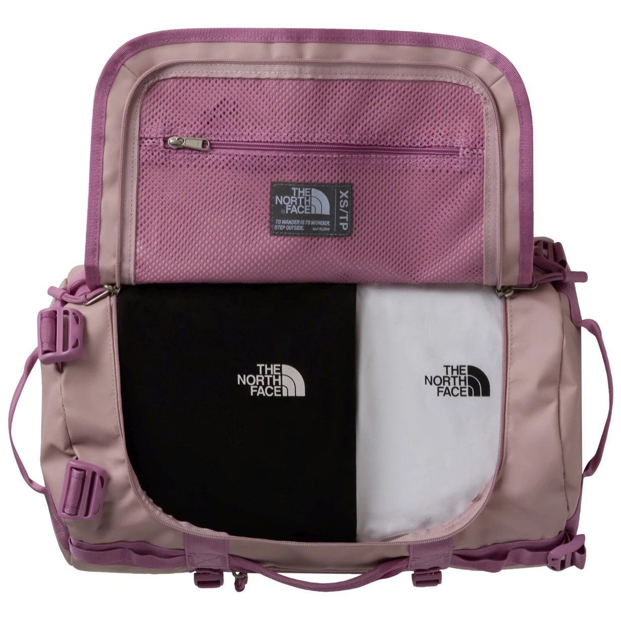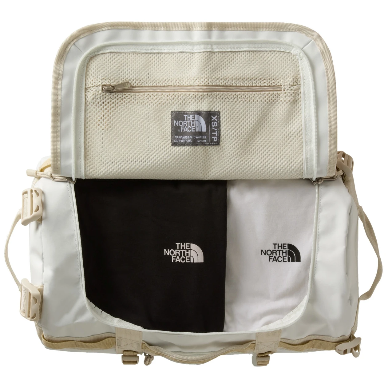 Geanta extrem de durabilă Base Camp Duffel de la brandul The North Face este disponibilă în mărimea XS, cu un volul de 33 de litri și are curele de umăr cu un decupaj optimizat pentru un transport mai confortabil. Mânerele sunt confortabile și nu taie. Este confecționată din material rezistent la apă și la abraziune. Are un fermoar lateral, un buzunar pentru telefon mobil, portofel sau alte obiecte mici care trebuie să fie ținute la îndemână.