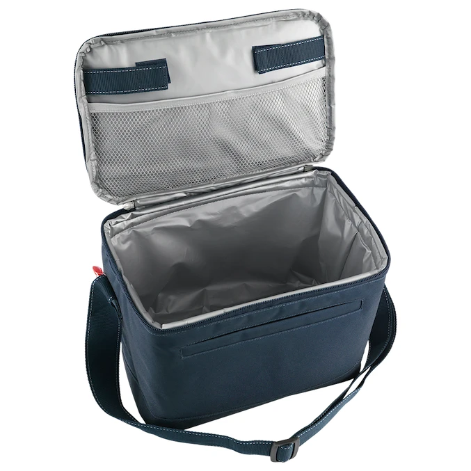 Este fabricat din material poliesteric de înaltă calitate, materialul interior este căptușeală PEVA cu cusături sudate, care este impermeabil și ușor de curățat. Capacul superior mare poate fi deschis pe trei părți, oferindu-vă acces perfect la interior. Cu un volum de 5 litri în compartimentul principal și spațiu suplimentar în buzunarul frontal, poți pregăti un picnic pentru familia sau prietenii tăi. În capac există un buzunar din plasă pentru gheață. Are o curea reglabilă, care vă permite să purtați geanta în mână și pe umăr. Când nu aveți nevoie de ea, geanta poate fi pliată într-un pachet compact datorită curelelor de compresie.