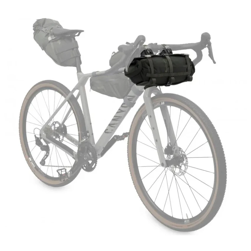 Geanta de ghidon Acepac Bar drybag MKIII 8L este impermeabilă, concepută pentru a fi utilizată cu geanta Bar Harness, dar poate fi folosită și singură ca sac impermeabil pentru echipament. Pentru ca acest sac să poată fi atașat la geanta Herness, acesta este prevăzut cu un lanț de chingă ușoară, închidere Velcro și, de asemenea, un cârlig de plastic. La fabricarea acestei genți a fost utilizat materialul NylonRobic (laminare TPU), o țesătură durabilă și ușoară, cu cusături lipite. Cusăturile tensionate sunt asigurate cu așa-numita cusătură Bartack (zig-zag), iar pentru o rezistență maximă au fost utilizate fire de poliester cu un diametru mare al fibrei.