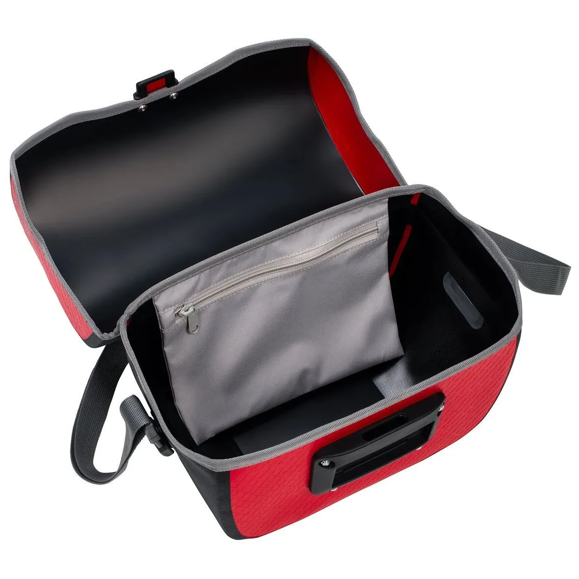 Adaptorul KLICKfix permite o fixare foarte rapidă, dar sigură. Acest adaptor se achiziționează separat, în funcție de tipul bicicletei. Geanta are o curea de umăr detașabilă, astfel încât să o puteți scoate rapid de pe bicicletă și să o folosiți ca un bagaj de mână.