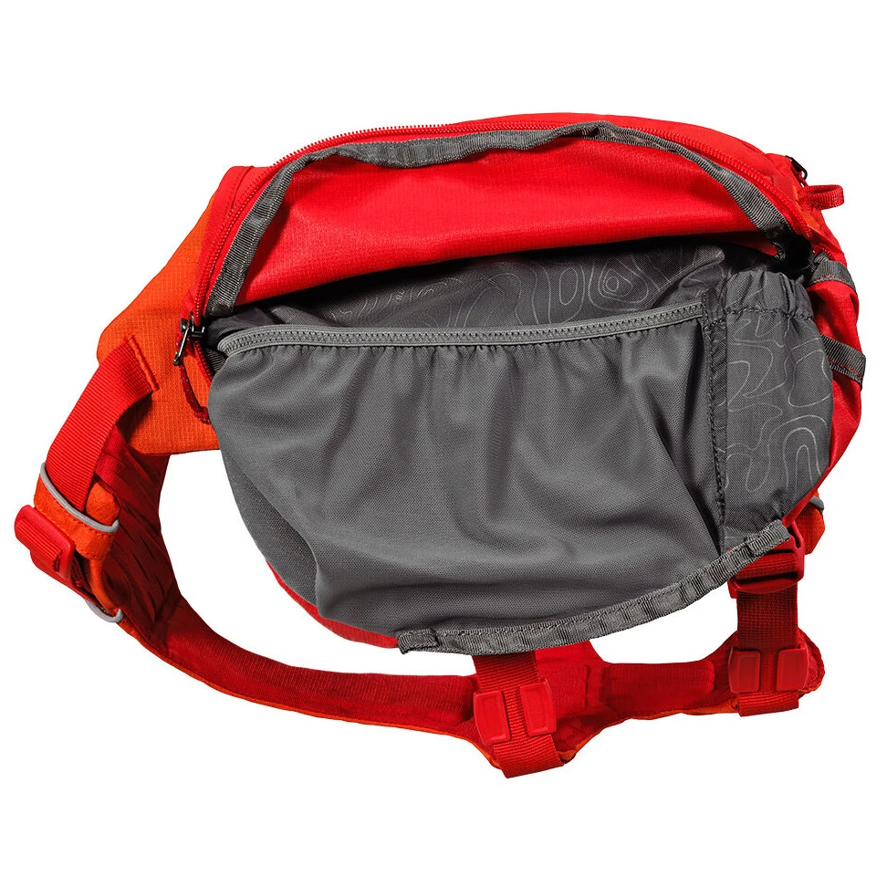 Ruffwear Palisades Pack™ sunt genți voluminoase pentru câini, pentru drumeții de mai multe zile, cu posibilitatea de a detașa buzunarele de ham, pentru flexibilitate maximă.