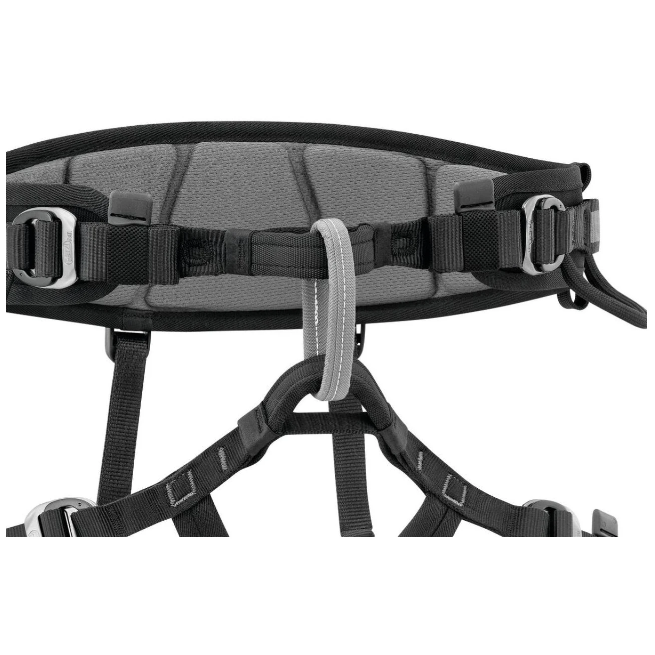 - Patru bucle pentru echipament: două mari rigide în față pentru acces ușor la echipament și două mici flexibile în spate, care nu interferează cu purtarea unui rucsac