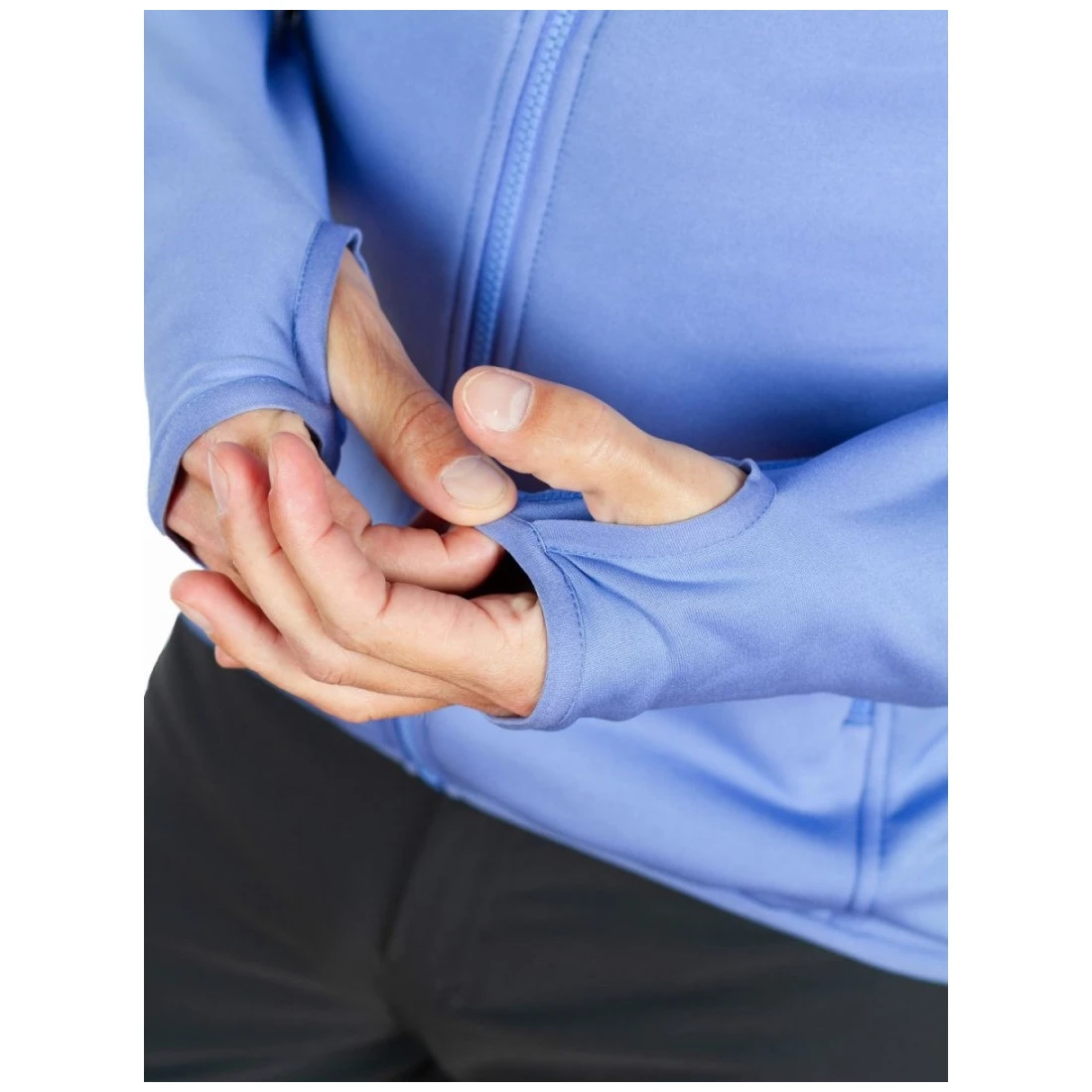 mânecile sunt, de asemenea, finisate cu margine elastică și o buclă pentru degetul mare