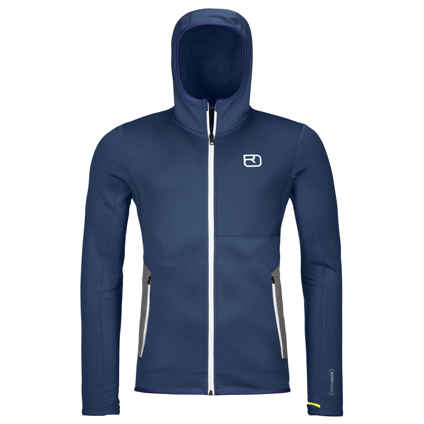 Hanoracul pentru bărbați Fleece Hoody M de la Ortovox are un design modern, ideal pentru activitățile din oraș. Combinația de lână merino și poliester are proprietăți funcționale excelente, pe care le veți aprecia în timpul activităților fizice solicitante. Proprietățile funcționale ale lânii merino garantează confort termic și o piele uscată. Poliesterul de la exterior sporește rezistența la uzură și vânt.