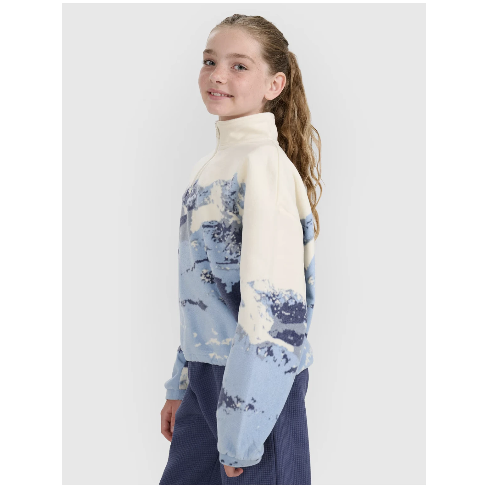 4F Kids Oversize Fleece cu Imprimeu este un hanorac elegant pentru fete, cu imprimeu mare și croială largă confortabilă — ideal pentru timpul liber și zilele de școală.