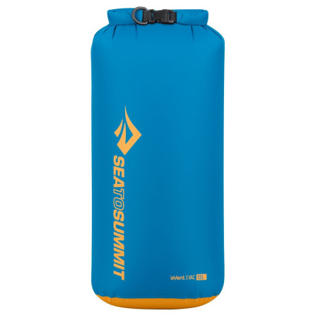 Păstrați echipamentul uscat. Apa nu poate pătrunde înăuntru cu gențile Evac Dry Bags de la Sea to Summit , fabricate din țesătură impermeabilă din nailon 70D reciclat , aprobată prin certificare bluesign®. 70D eVent® este o bază impermeabilă, dar respirabilă, care permite împingerea aerului în afară, menținând în același timp conținutul din interior uscat, ceea ce duce la o utilizare mai eficientă a spațiului. Tratament de suprafață DWR pe ambele părți sunt C0 fără PFC. Împachetați-vă obiectele personale, cum ar fi sacii de dormit și hainele într-un sac uscat Evac, rulați capacul de rulare și apoi strângeți punga pentru a elimina aerul. Această caracteristică vă permite să împachetați mai eficient articolele în rucsac sau geanta de călătorie. Baza ovală permite introducerea ideală într-un rucsac. Toate cusăturile sunt cusute dublu și lipite.