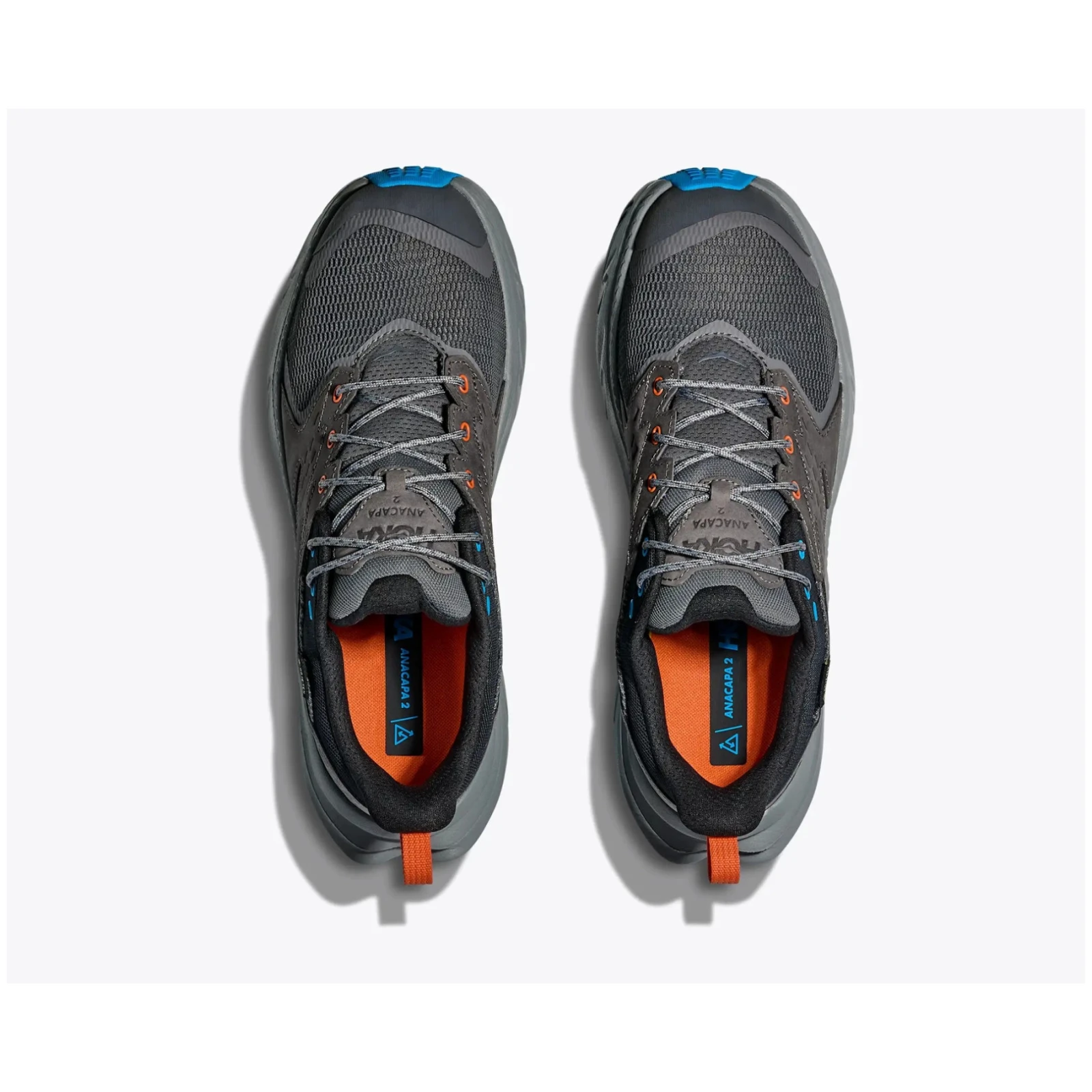 Pantofii de drumeție pentru bărbați Hoka Anacapa 2 Low GTX sunt perfecți pentru expediții zilnice în aer liber. Partea superioară este confecționată din piele năbuc certificată de Leather Working Group, completată de poliester reciclat. Deși sunt cizme din piele, sunt foarte ușoare.