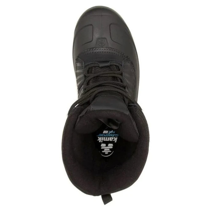 Cizmele de iarnă pentru bărbați Iceland de la producătorul canadian Kamik sunt alegerea potrivită pentru zilele geroase. Construcția impermeabilă și cusăturile sigilate țin la distanță zăpada și umezeala. Partea superioară este fabricată din piele naturală, prelucrată ecologic și piele PU. Piciorul dvs. va fi confortabil datorită gulerului și limbii moi căptușite. Confortul termic este asigurat de izolația HEAT-MX™ și de căptușeala care evacuează umezeala. Talpa inter ioară EVA detașabilă asigură amortizare și o talpă confortabilă. În plus, este tratat cu tratament natural non-toxic Cleansport NXT™ pentru eliminarea mirosurilor. Talpa impermeabilă din cauciuc sintetic flexibil și talpa Defender2 garantează stabilitate și tracțiune perfectă în condiții de iarnă. Canalele din modelul tălpii pot face față cu ușurință zăpezii, noroiului și apei. O a doua pereche de șireturi, care este inclusă în pachetul de pantofi, va plăcea cu siguranță.