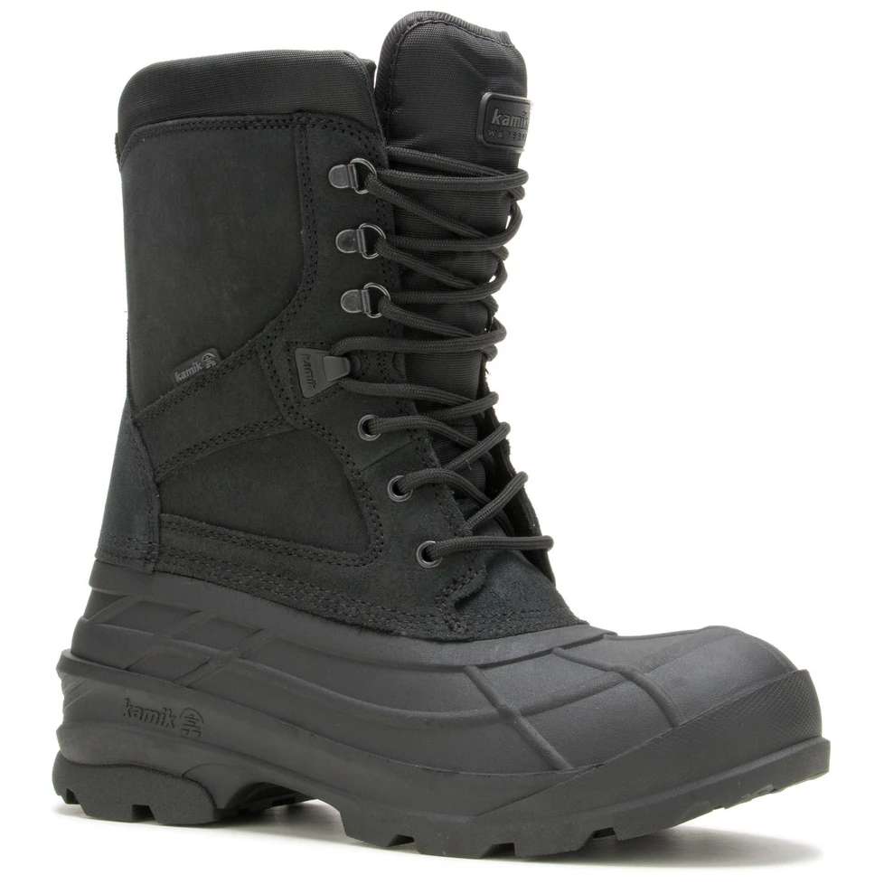 Cizme de iarnă pentru bărbați Kamik Nation Plus concepute pentru munca de teren sau vânătoare. Pantofi dantelați realizați dintr-o combinație de material sintetic și piele naturală.