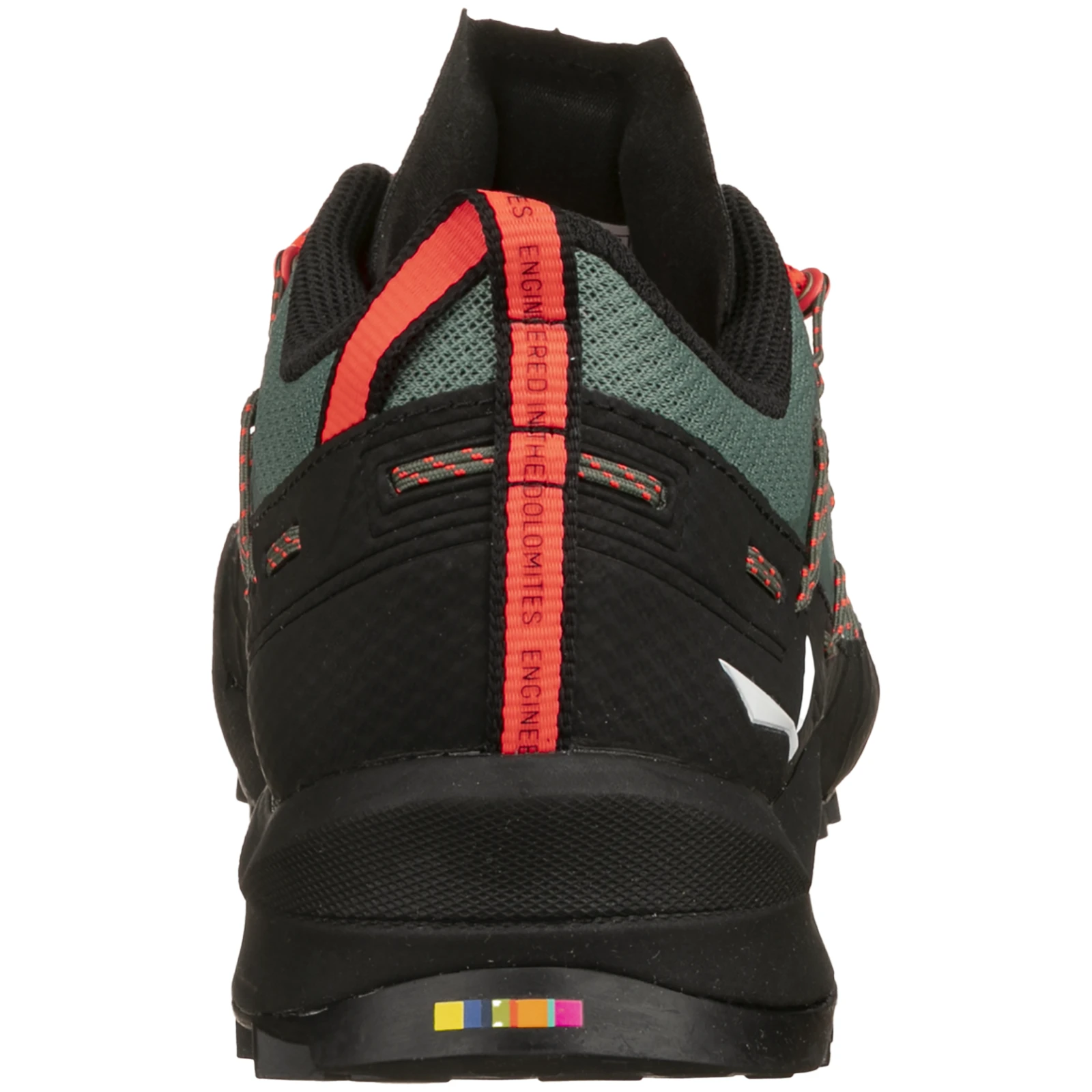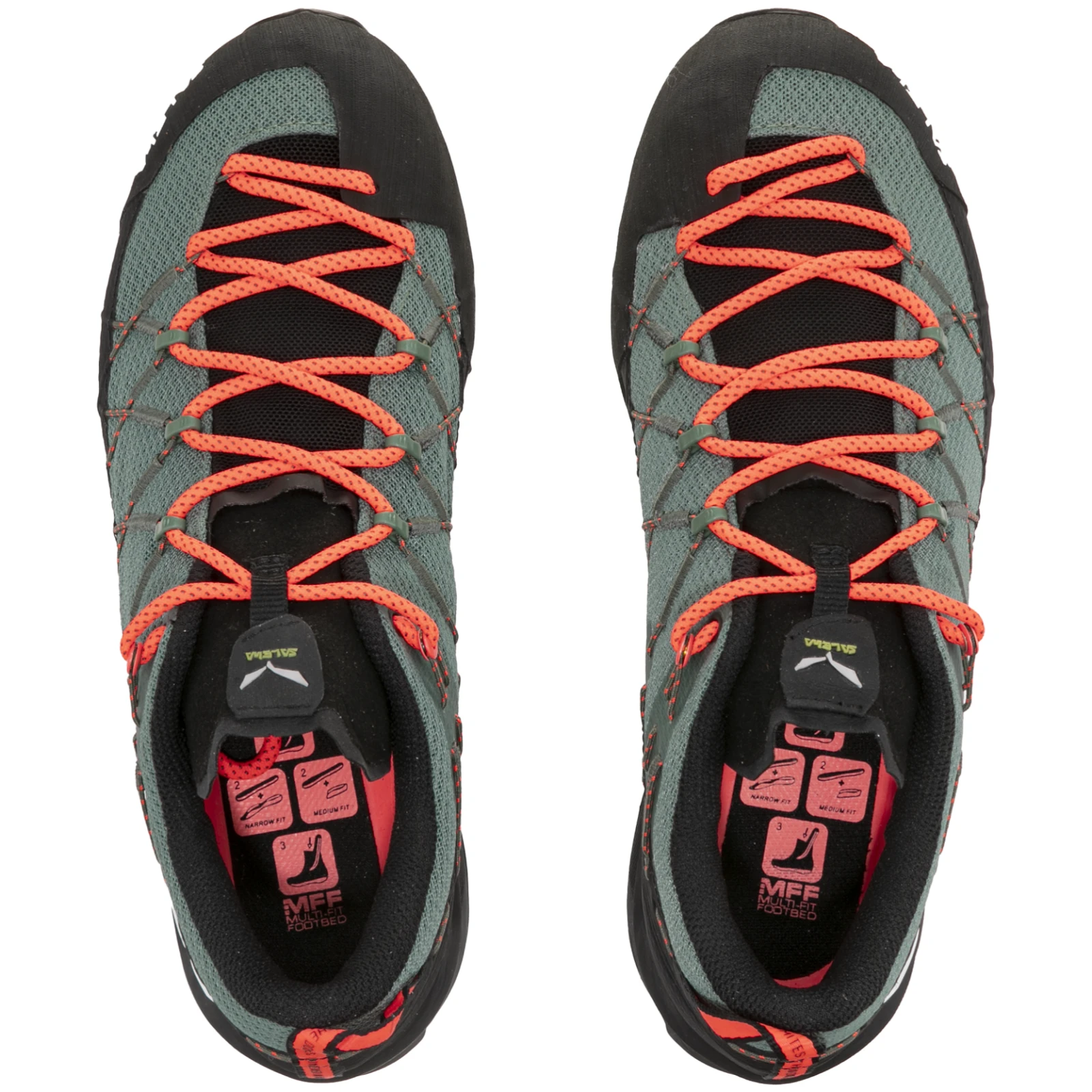 Pantofii pentru femei Salewa Wildfire 2 W sunt ideali pentru cățăratul de tip ferrata, dar și pentru drumeții mai ușoare. Talpa POMOCA Speed Mtn se remarcă prin aderența, tracțiunea și precizia ridicată, fiind potrivită pentru ascensiuni stâncoase ferrata și pasaje tehnice mai dificile. La nivelul vârfului tălpii există o zonă importantă de cățărare - o porțiune a tălpii fără model care garantează o escaladare mai sigură pe stânci. Stratul exterior din plasă respirabilă este protejat împotriva deteriorării datorită tehnologiei speciale EXA SHELL. Alături de funcția de protecție, grilele de pe pantof sporesc confortul, iar încălțămintea se adaptează mai bine la forma piciorului datorită metodei de injectare utilizate.