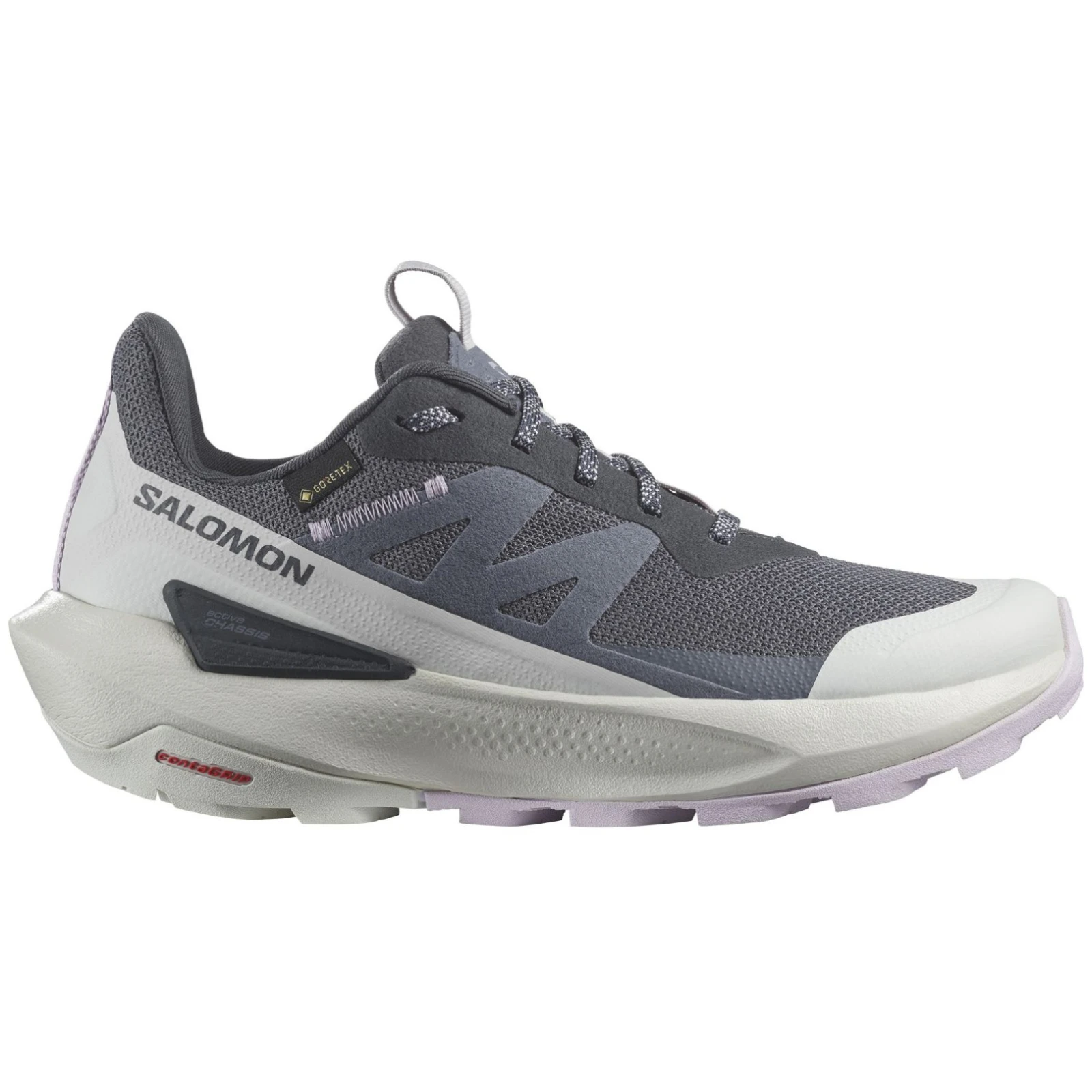 Cizmele de drumeție pentru femei Elixir Activ Gore-Tex de la marca Salomon sunt un însoțitor fără compromisuri pentru călătorii. Tehnologia Active Chasis combină un compus moale al tălpii intermediare și o geometrie specifică la nivelul tălpii exterioare pentru un pas cursiv și confortabil, sporind încrederea și oferind suport lateral.