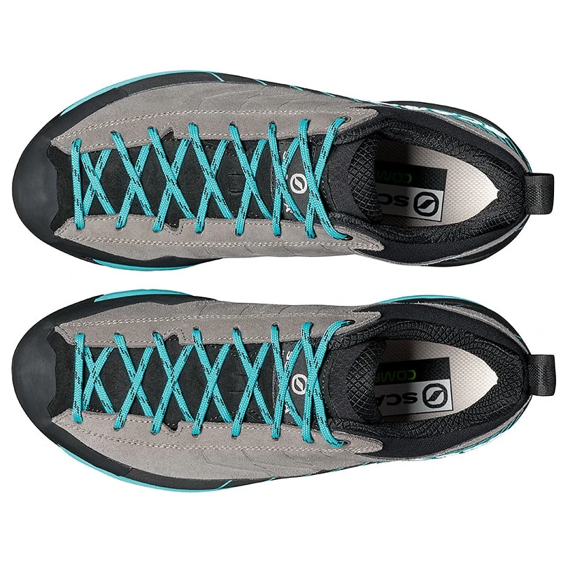 Bocancii de trekking Mescalito WMN sunt fabricați în UE de compania familială Scarpa din Italia, care produce încălțăminte din 1938. Partea superioară integral din piele este întărită cu tehnologia EXO Skeleton. Pantofii au șireturi practice până la vârf. Atunci când se utilizează pe teren stâncos cu pasaje de cățărare, utilizați zona de cățărare pe vârf.