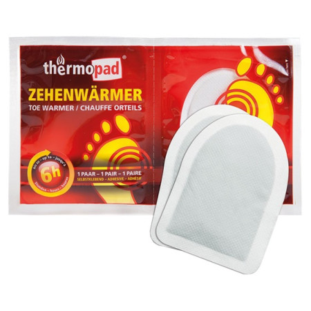 Încălzitorul de degete Thermopad fabricat de Yate este utilizat în principal pentru încălzirea degetelor de la picioare în condiții meteorologice nefavorabile. Astfel, utilizatorul poate evita răcelile și eventualele accidente. Racționează atunci când este în contact cu oxigenul, așa că durează un anumit timp până se încălzește. Acesta ar trebui să dureze până la 6 ore (în funcție de condițiile ambientale) și este de unică folosință. Dimensiunea încălzitorului este de 9,5x6,5 cm. Pachetul conține o pereche la un moment dat.