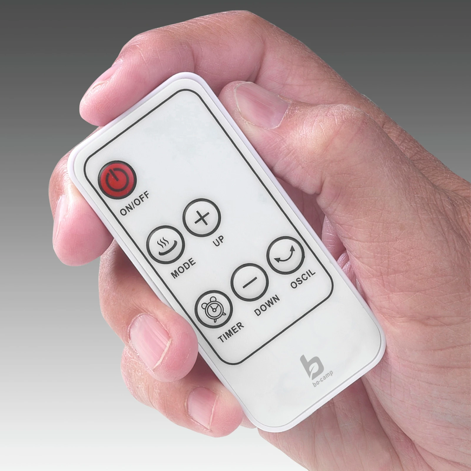 Încălzitorul elegant din ceramică Bo-Camp cu funcție de oscilație, ventilator și 3 setări este ideal pentru rulote sau încăperi mici. Cu telecomandă și temporizator.