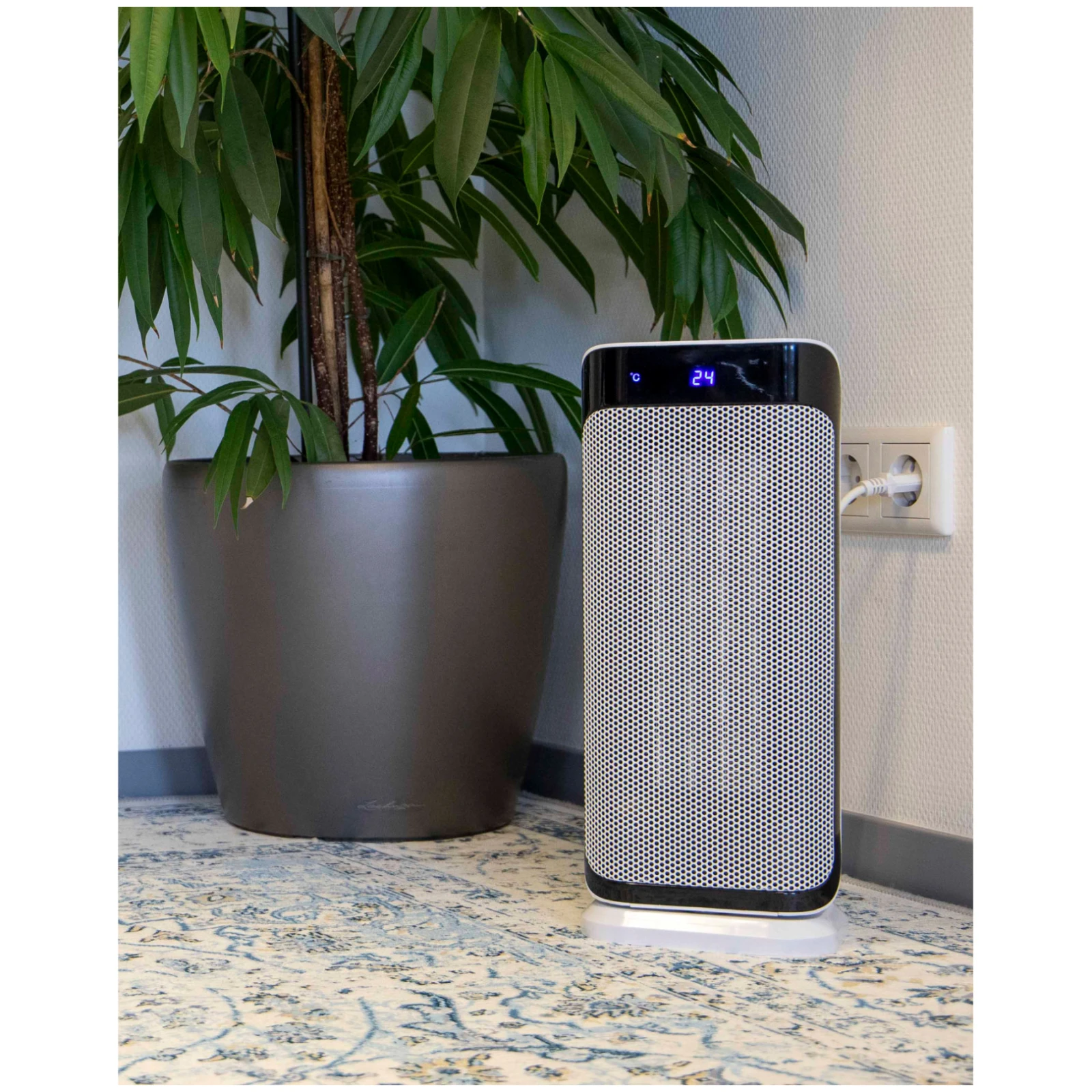 Acest încălzitor ceramic are un ecran LCD, o telecomandă și funcție de temporizare, ceea ce face funcționarea simplă și convenabilă. Are și caracteristici de siguranță, cum ar fi protecția la supraîncălzire și protecția la răsturnare, pentru a vă oferi liniște chiar și în cazul utilizării prelungite.
