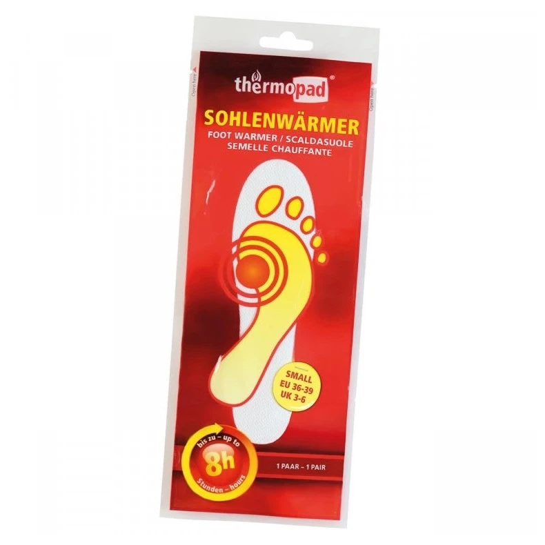 Încălzitor pentru picioare Thermopad S produs de companie Yate este folosit în principal pentru a încălzi picioarele pe vreme nefavorabilă. Astfel, utilizatorul poate evita răcelile și eventualele accidente. Racționează atunci când este în contact cu oxigenul, așa că durează un anumit timp până se încălzește. Acesta ar trebui să dureze între 5 și 12 ore (în funcție de condițiile ambientale) și este de unică folosință. Pachetul conține doar o pereche.