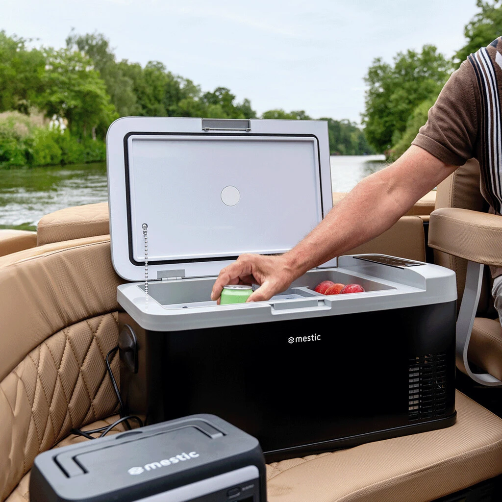 Cutia frigorifică MCC-18 AC/DC de la marca Mestic are o răcire extrem de puternică și funcționează ca un frigider pe care îl ai acasă. Are un interval de răcire de la +10 °C la -18 °C. Acest lucru înseamnă că îl puteți folosi și ca congelator. Pur și simplu setați temperatura dorită cu ajutorul ecranului tactil LCD de pe cutie. Temperatura ambientală nu are niciun efect asupra performanței de răcire a acestei lăzi frigorifice, astfel încât vă puteți bucura oricând de o înghețată răcoritoare în fața rulotei dumneavoastră! Acest frigider are aceeași capacitate de răcire la 12 V ca și la 230 V. Cu alte cuvinte, îl puteți utiliza în mașină, dar îl puteți conecta și la o priză de perete. Pentru aceasta aveți nevoie de un adaptor (inclus).