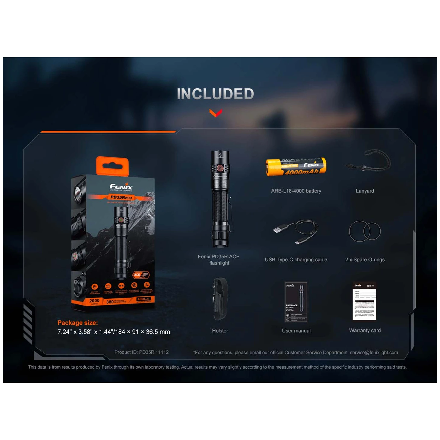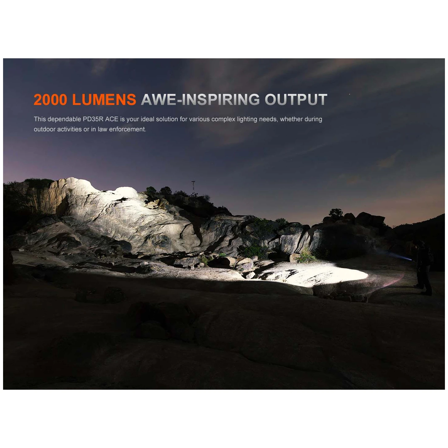 Lanterna de buzunar de înaltă performanță Fenix PD35R ACE vă va uimi cu un flux luminos de până la 2000 de lumeni (ANSI) și o rază de acțiune de până la 380 de metri. Această performanță luminoasă excelentă este asigurată de LED-ul Luminus SFT-40. Energia este furnizată de un acumulator Li-ion 18650 cu o capacitate de 4000 mAh (îl găsiți în pachet), care se încarcă ușor direct în lanternă prin conectorul modern USB-C.