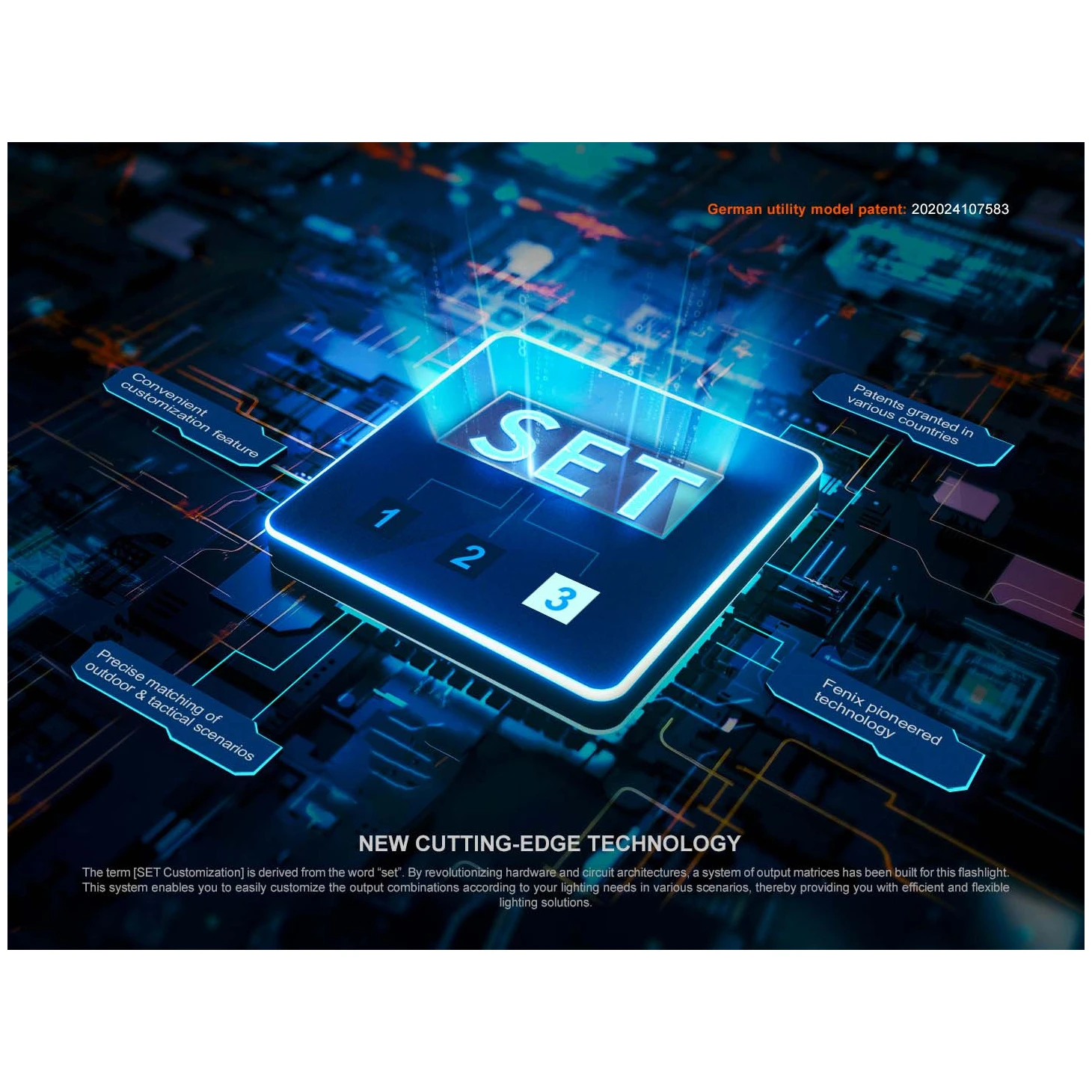 Sub piulița rezistentă cu șurub, care protejează portul de încărcare USB-C, se ascunde și un buton de programare unic SET. Cu ajutorul acestuia, puteți personaliza rapid lanterna: alegeți unul dintre cele trei profiluri predefinite – tactic, de serviciu sau outdoor – și setați perfect numărul de moduri, exact în funcție de nevoile dvs.
